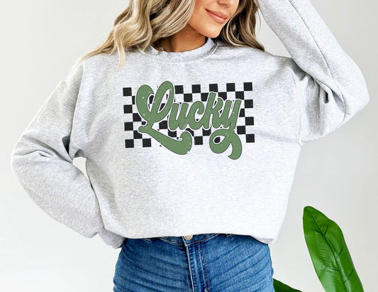 Lucky Checkered Graphic Vintage St. Patricks Day Shirt