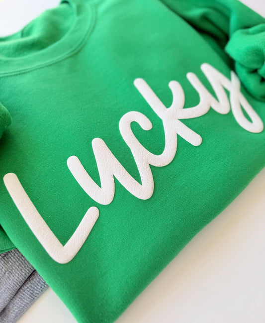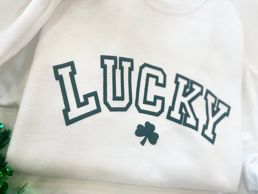 Embossed LUCKY Varsity St. Paddys Sweatshirt