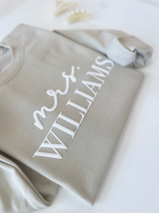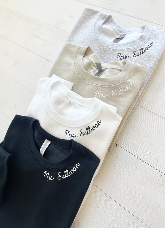 Custom Embossed Mrs. Crewneck Sweatshirt