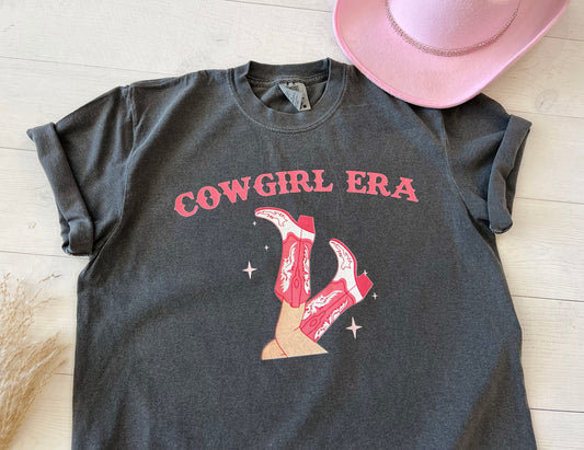 Womens Western Retro Cowgirl Era Pink Boots T-Shirt