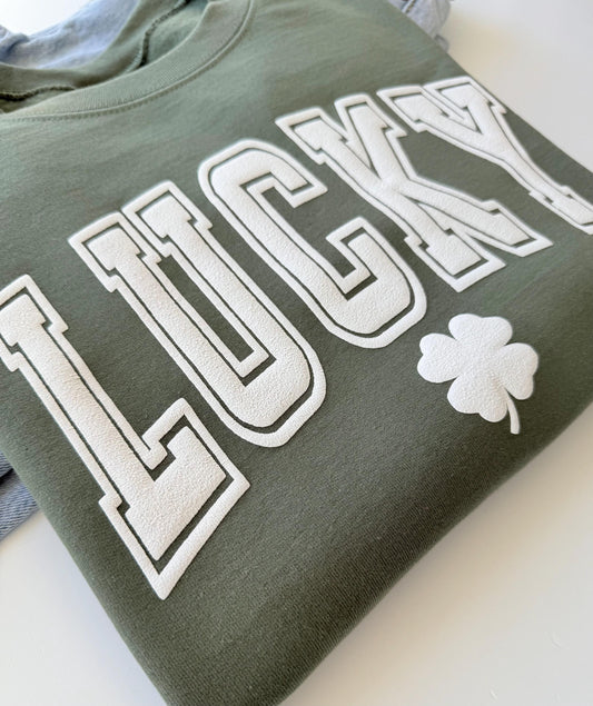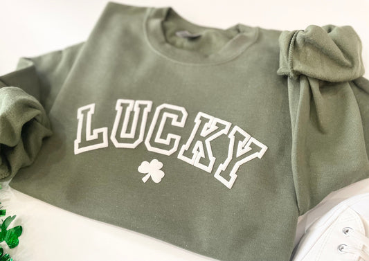 Embossed LUCKY Varsity St. Paddys Sweatshirt