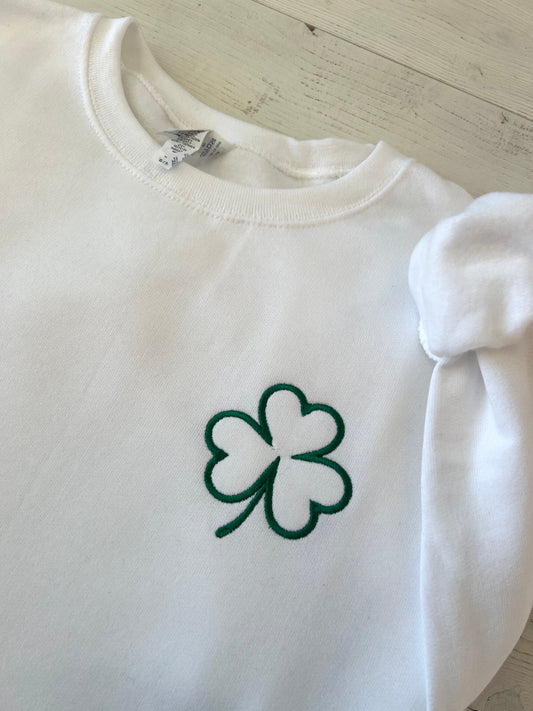 Embroidered St. Patty's Day Crewneck, Women's Festive Sweater, Embroidered Shamrock Sweatshirt, St. Patrick's Day Sweatshirt, Shamrock Top