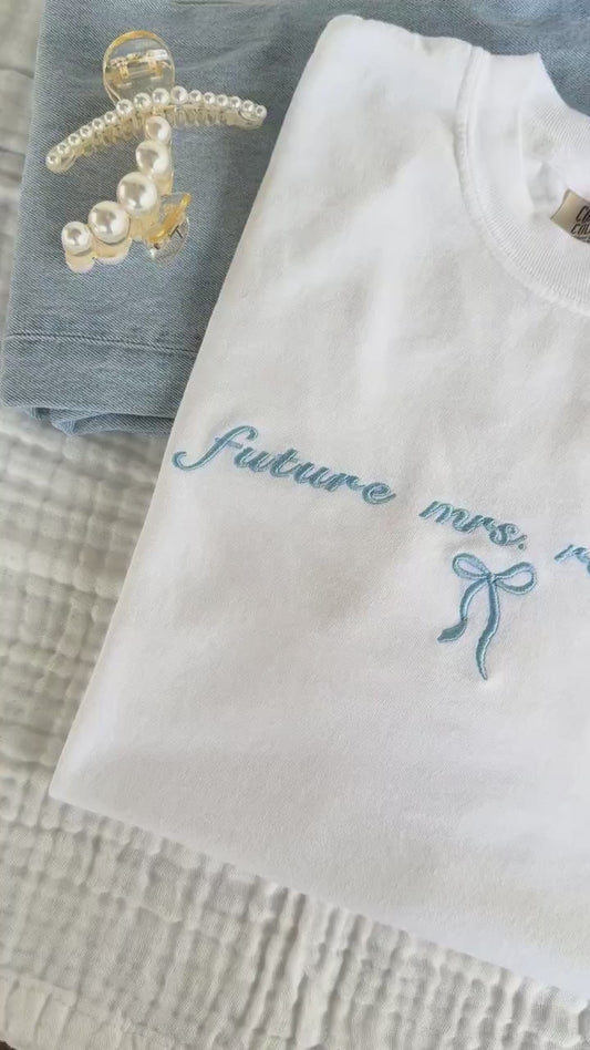 Comfort Colors, Embroidered Future Mrs. Shirt, Coquette Bachelorette Party, Custom Future Mrs. Shirt, Engagement Gift, Custom Fiance Gift
