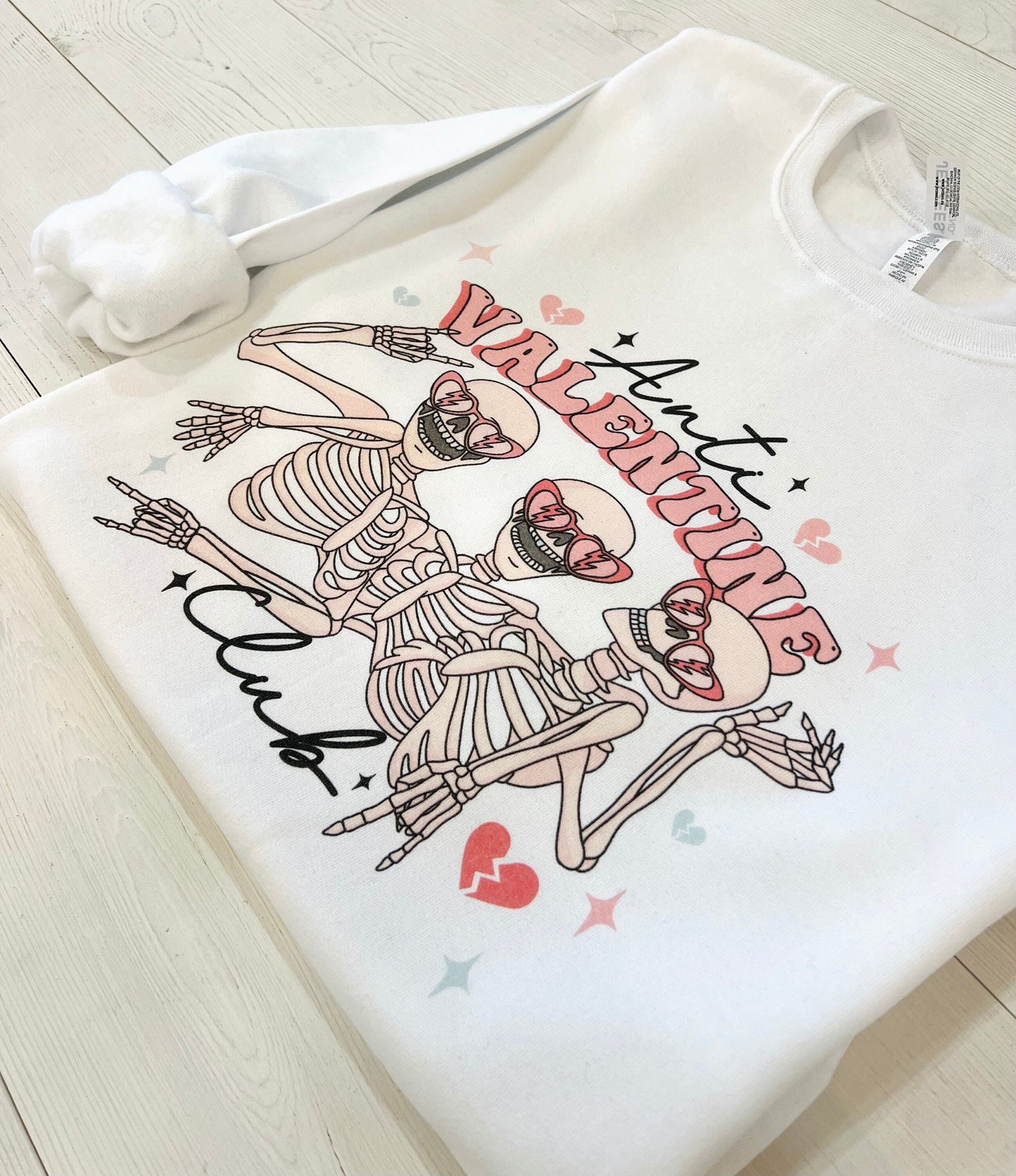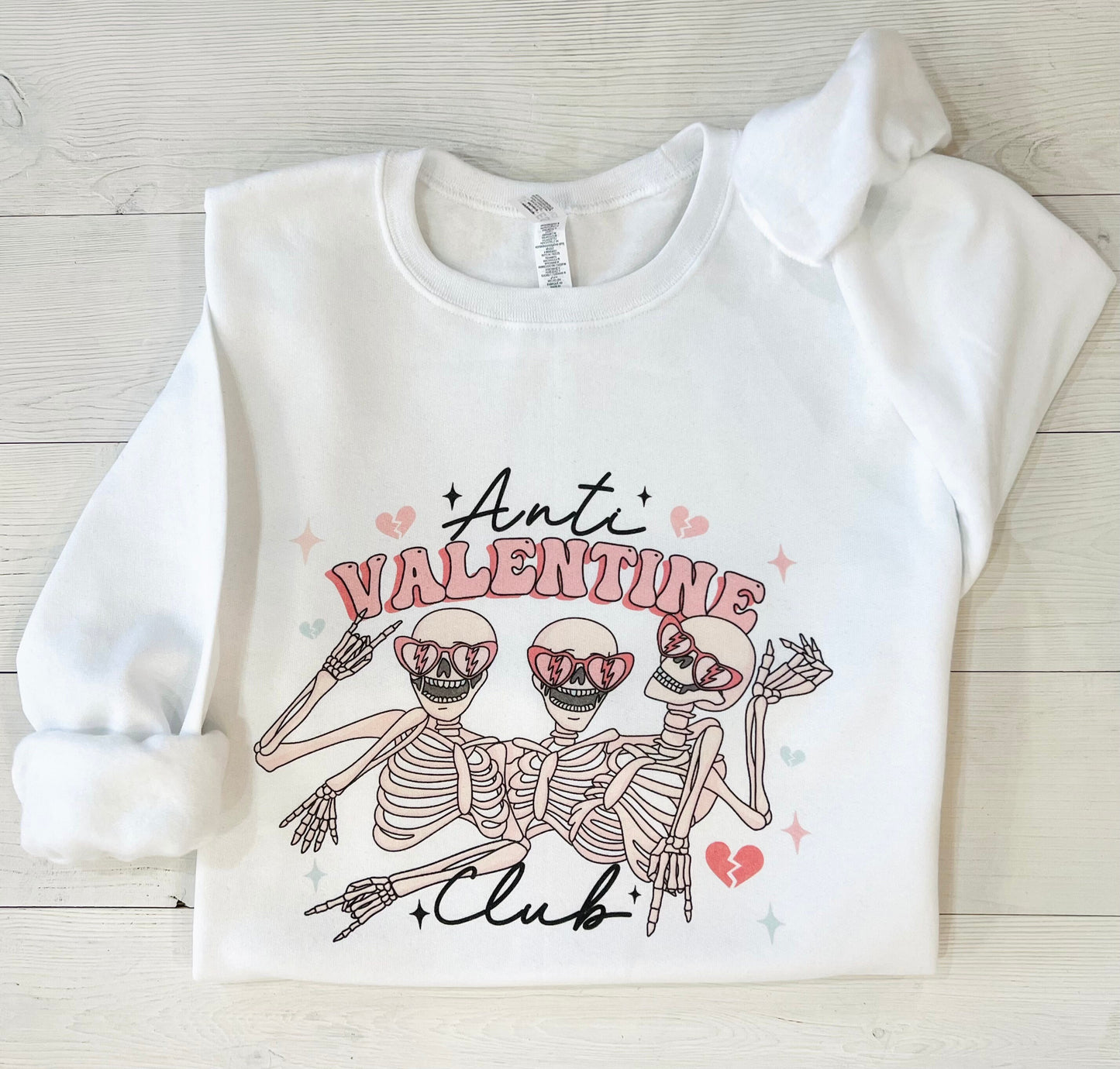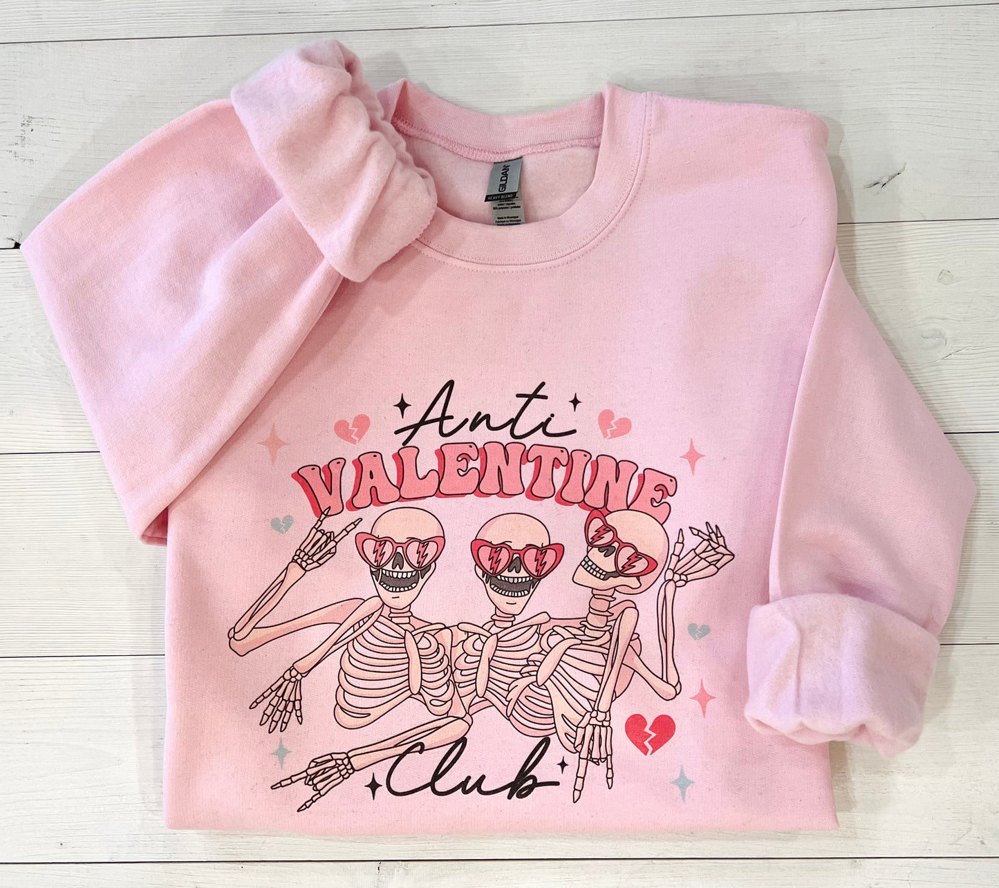 Break the Valentine’s mold with our Anti-Valentine Club Three Skeleton Sweatshirt! Featuring a bold and edgy skeleton design, this comfy sweatshirt is perfect for those embracing a no-hearts, no-flowers vibe 💖✨