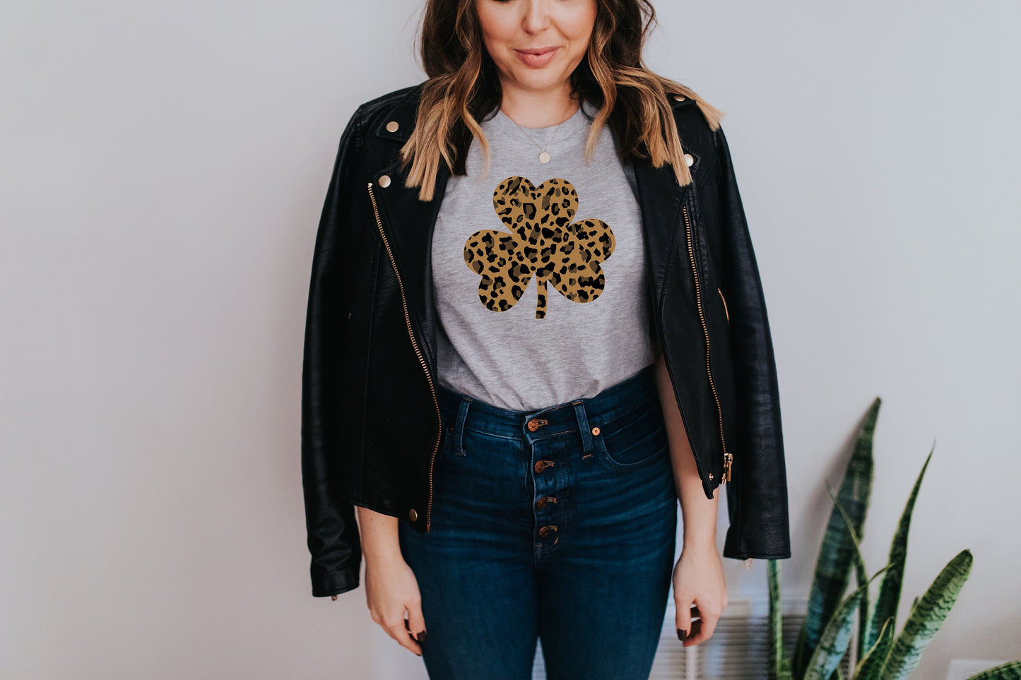 Cheetah Print Buffalo Plaid Three Leaf Clover T-Shirt