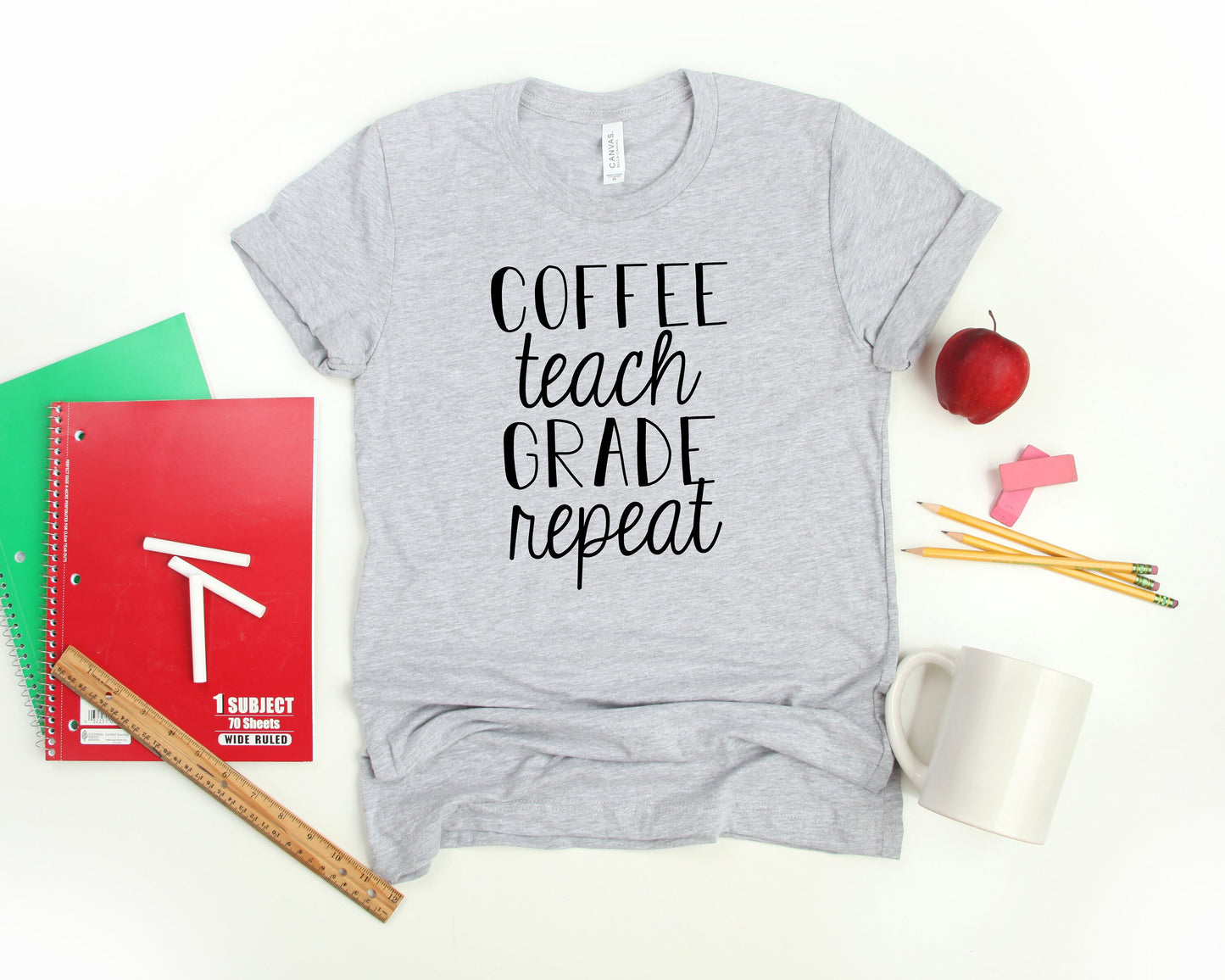 Coffee Teach Grade Repeat Teacher T-Shirt