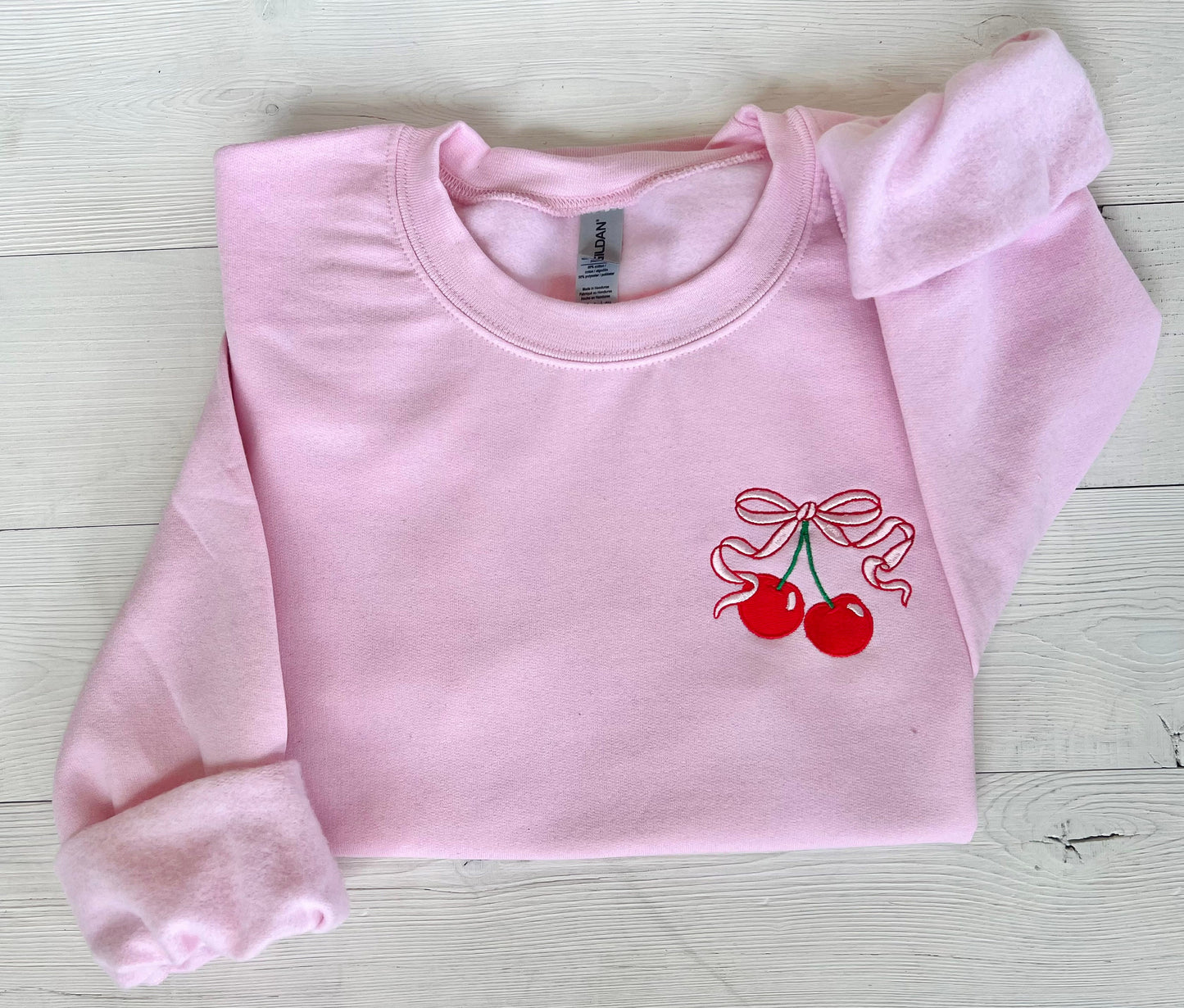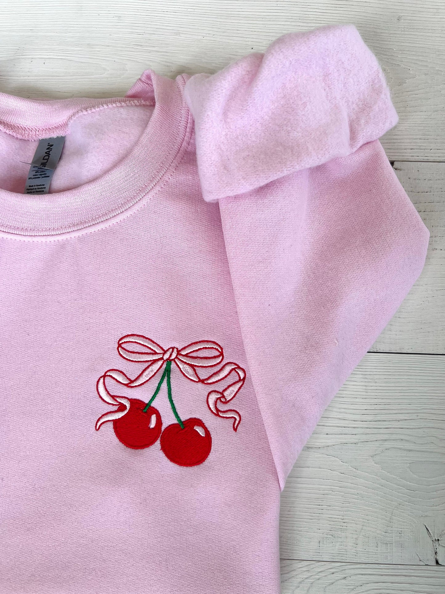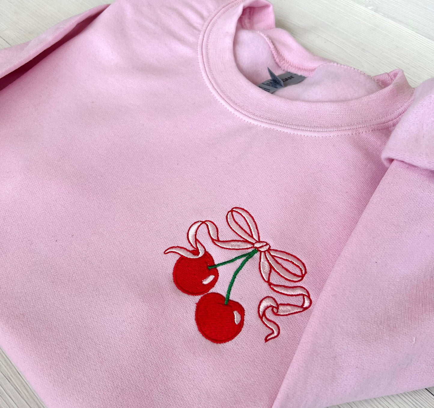 Coquette Cherries Bow Embroidered Womens Sweatshirt