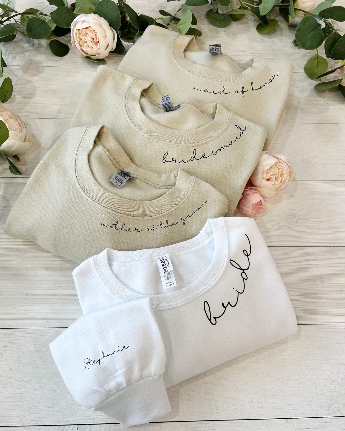 - Personalized Touch: Each sweatshirt can be customized with names, initials, or special dates, making them a memorable keepsake for your bridal party.