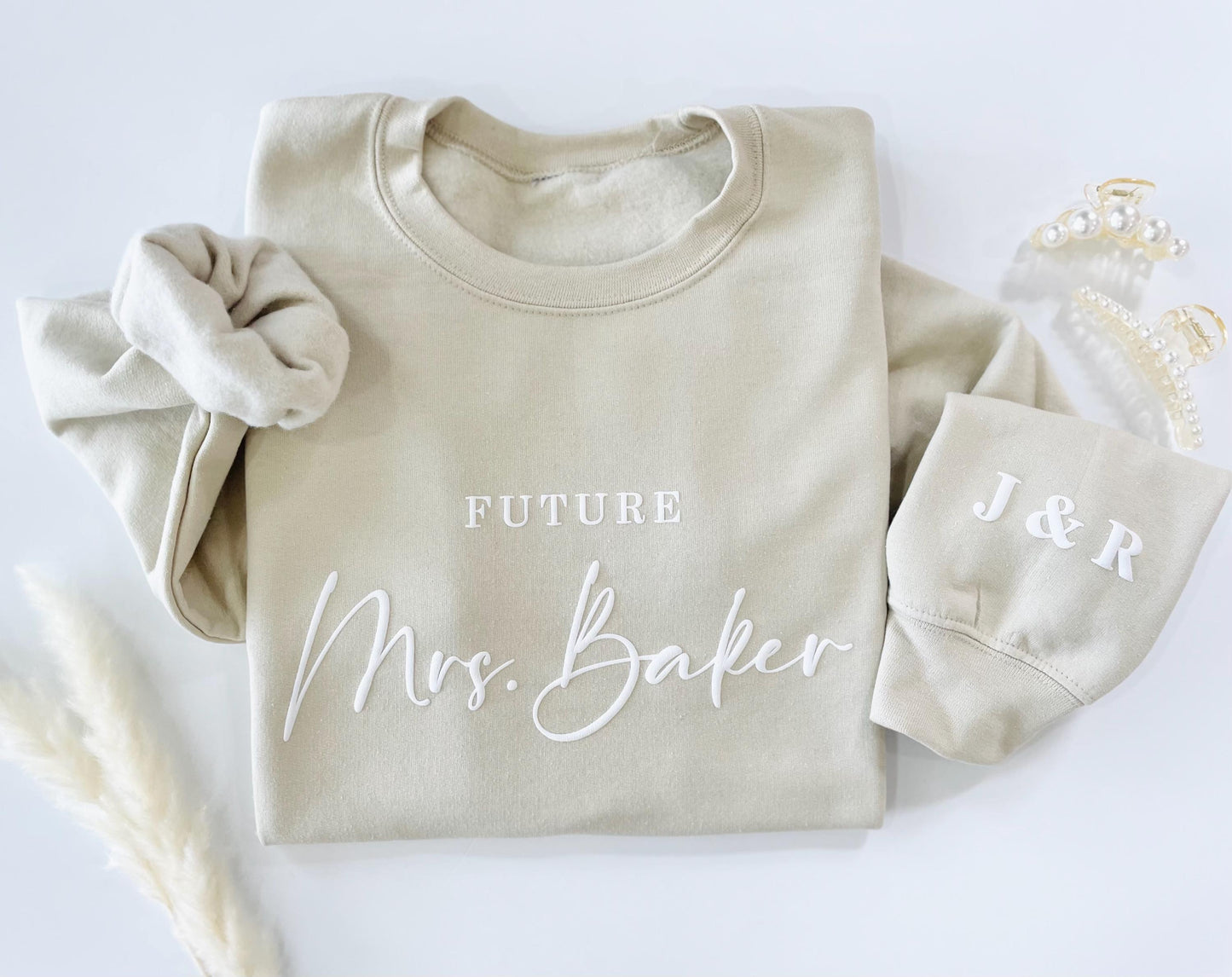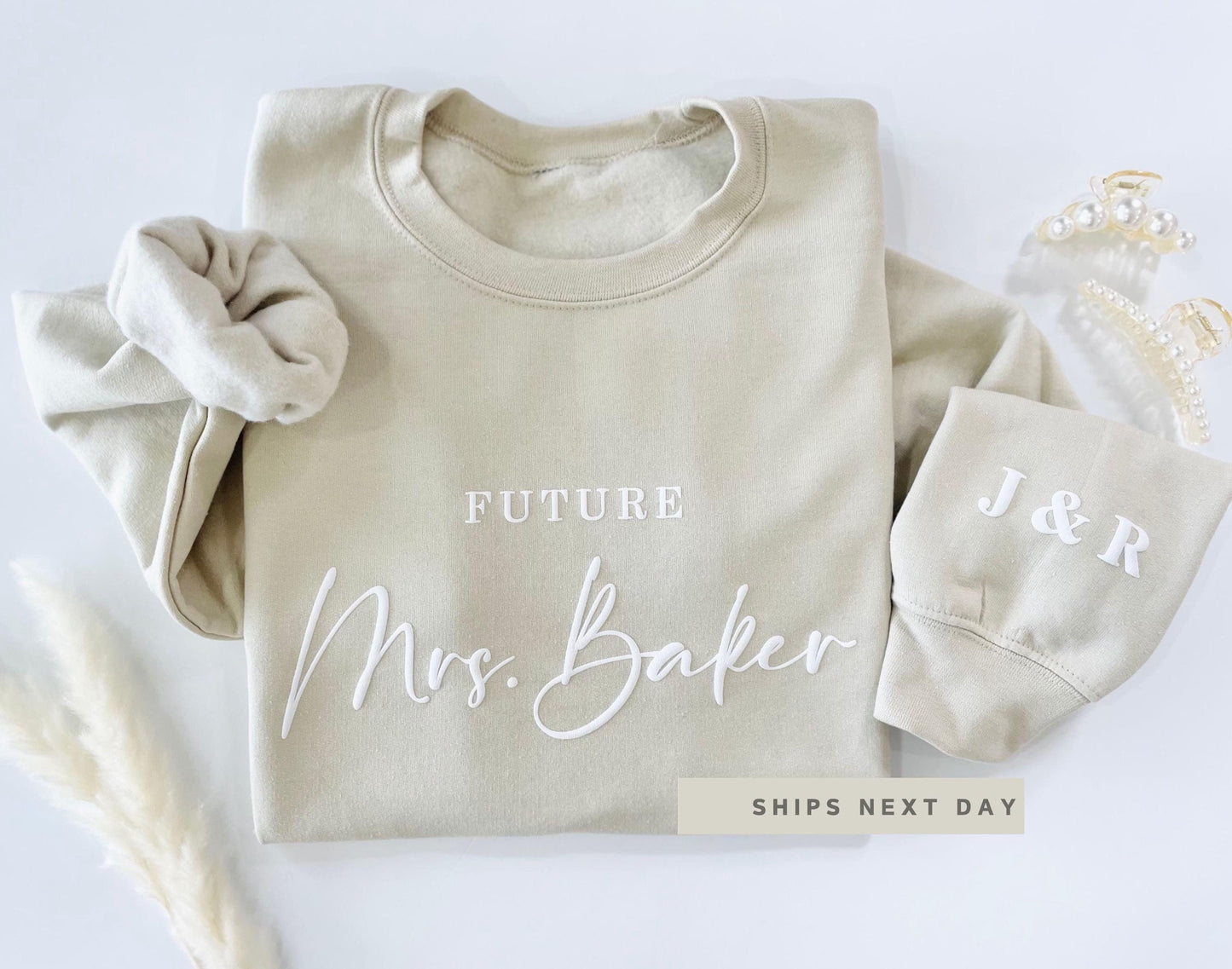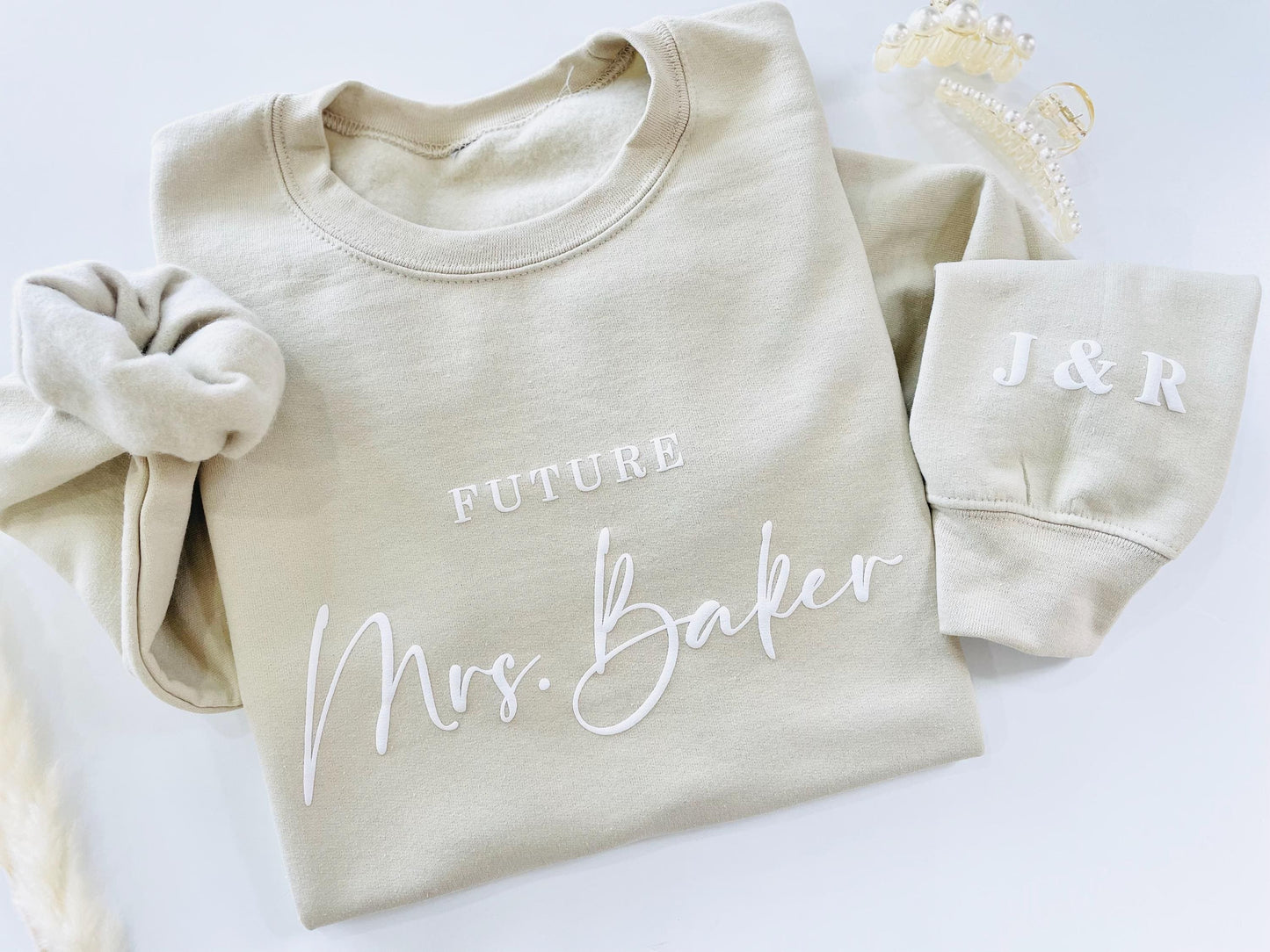 Celebrate your upcoming nuptials in style with our luxurious Custom Embossed Mrs. Crewneck Sweatshirt. This personalized sweatshirt is the perfect blend of comfort and elegance, designed specifically for the sophisticated bride-to-be.