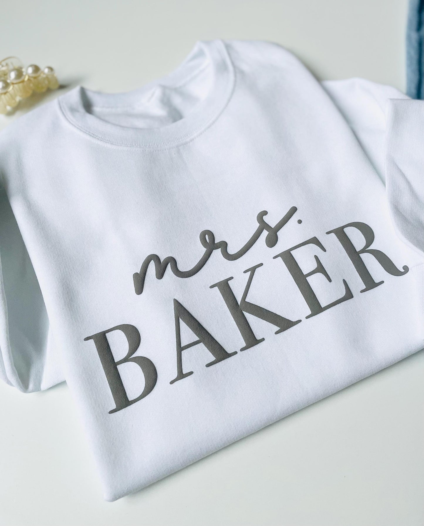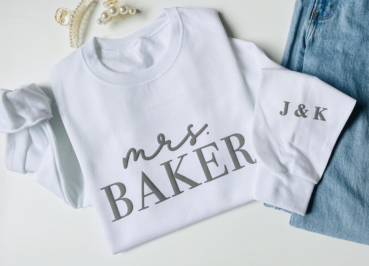 Embrace your new journey and make a statement with the Custom Embossed Mrs. Sweatshirt With Initials. It’s not just a piece of clothing; it’s a celebration of love, commitment, and your unique identity!