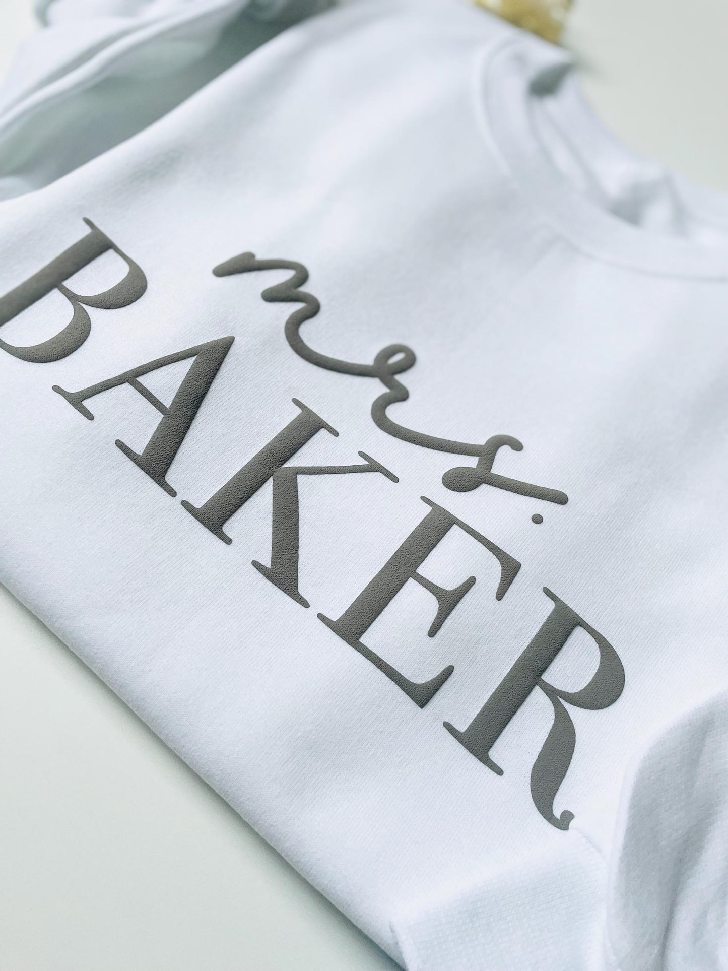 - Elegant Embossed Design: The front features a beautifully embossed "Mrs." that adds a touch of sophistication to your casual wear.