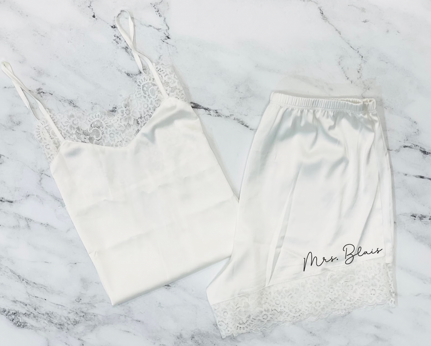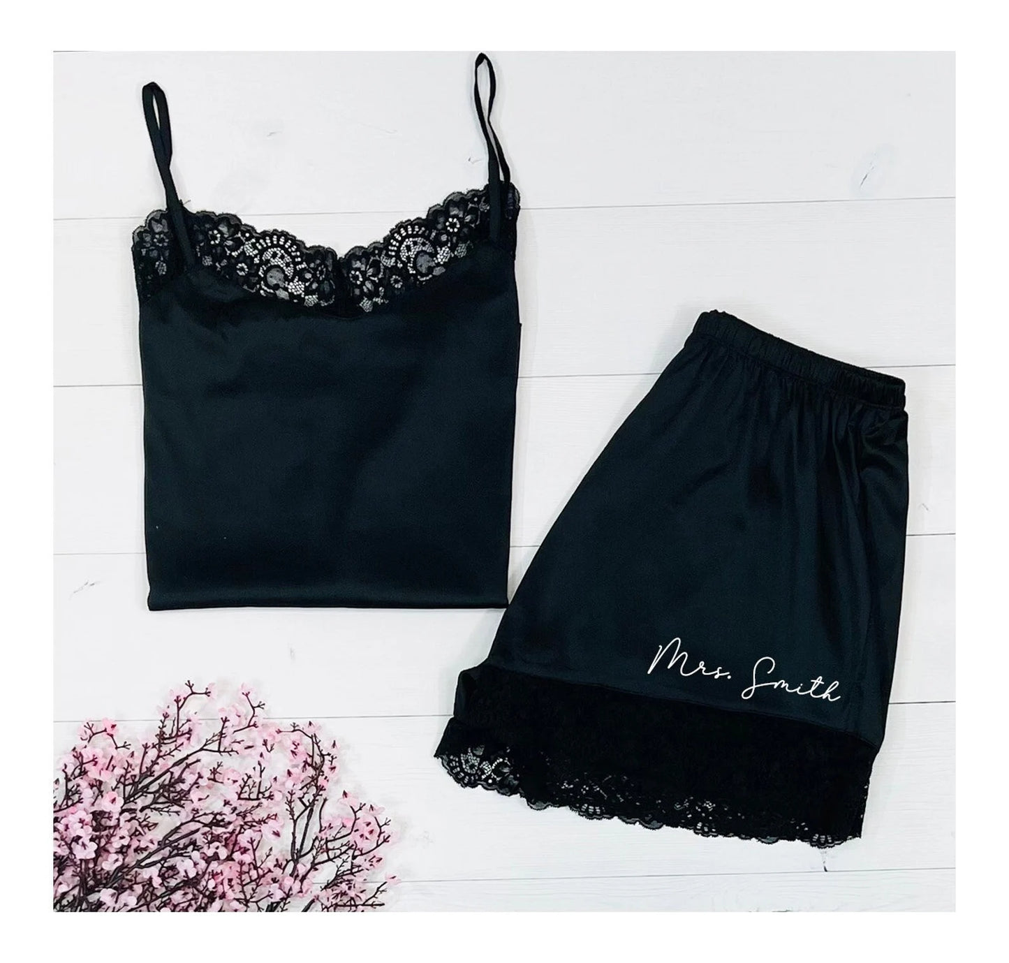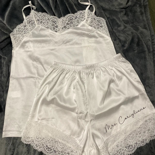 Indulge in the elegance of our Custom Satin Pajama Set, designed to offer the perfect blend of comfort and sophistication. This luxurious, silky set can be personalized with your last name, making it a truly special addition to your sleepwear collection.