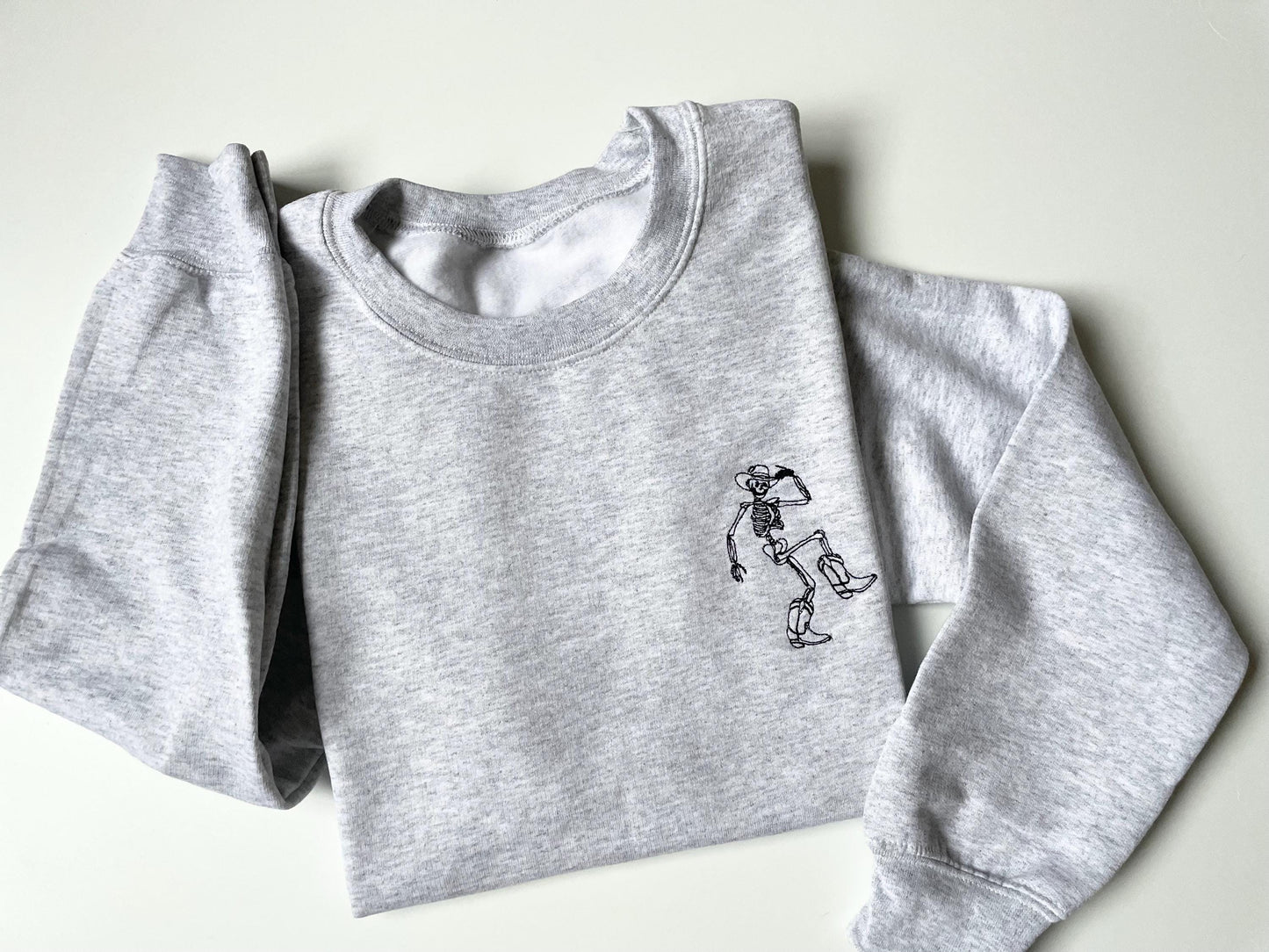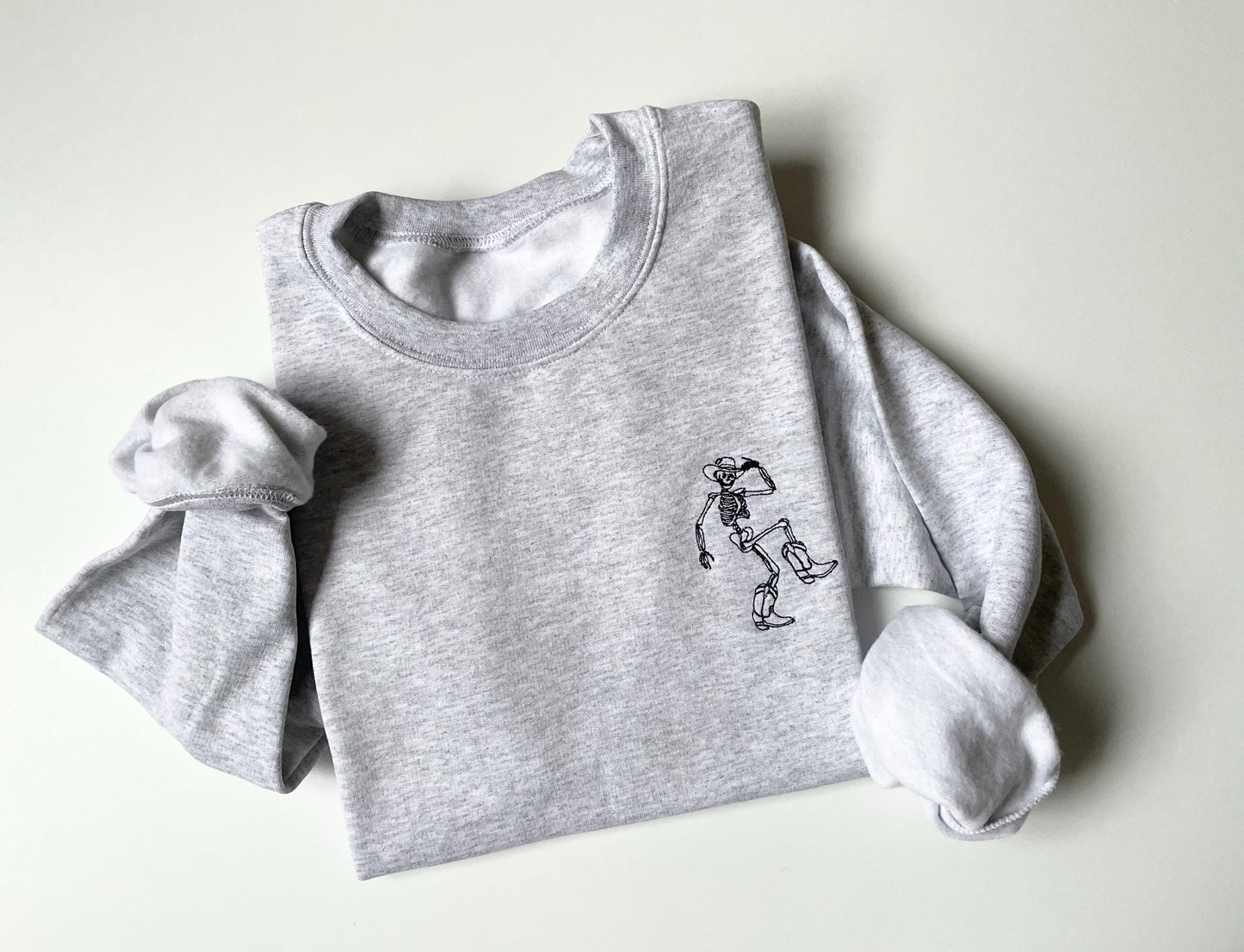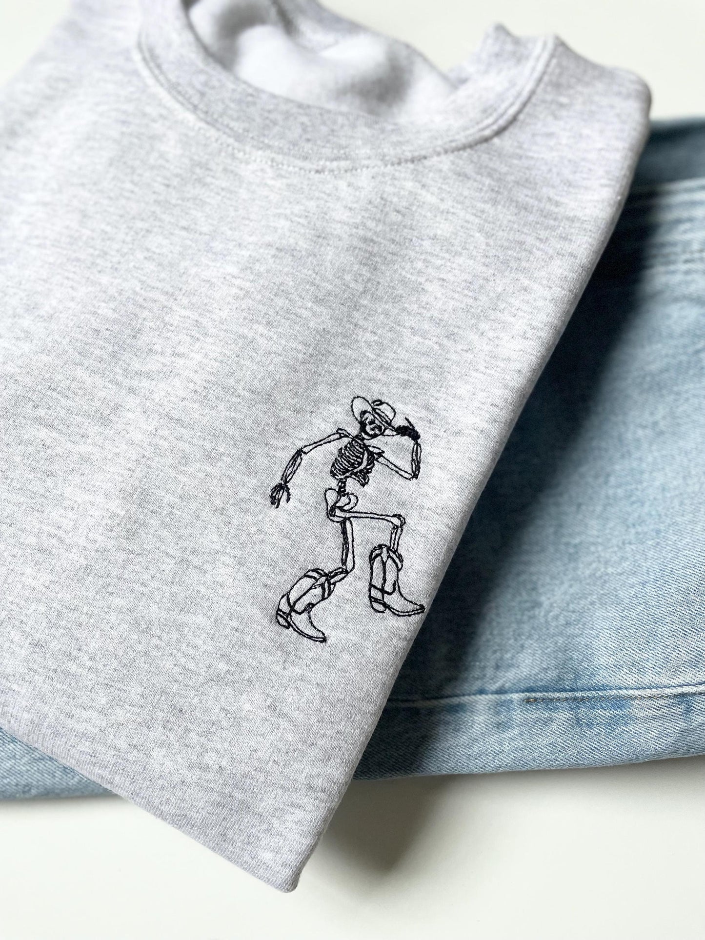 Get Festive with Our Dancing Skeleton Embroidered Halloween Crewneck