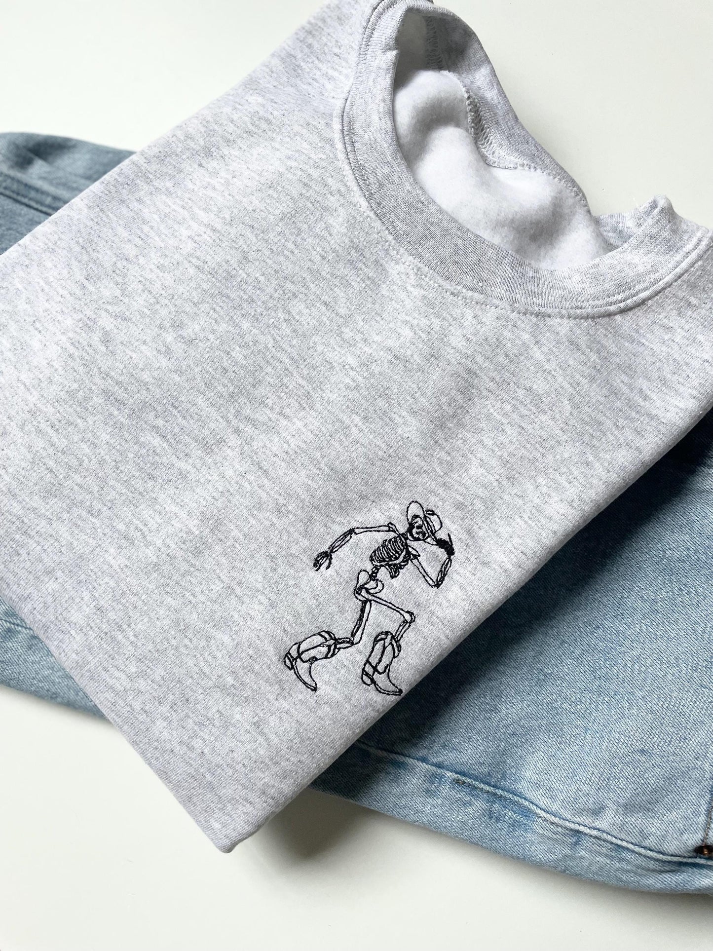 Embrace the Halloween season with our Dancing Skeleton Embroidered Crewneck and let your personality shine! Don’t miss out on this must-have addition to your holiday wardrobe.