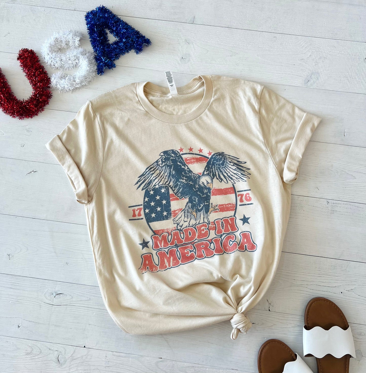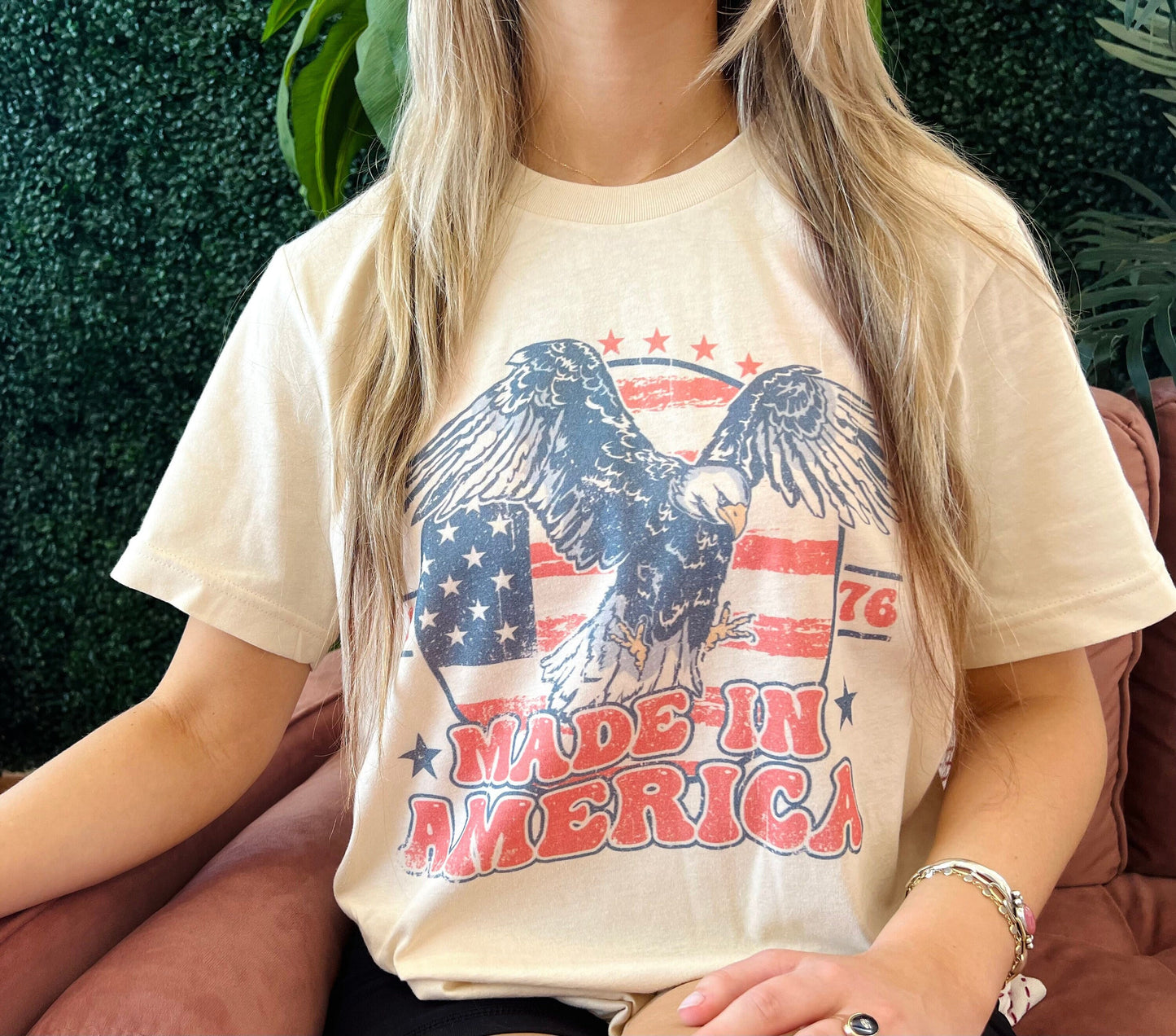 Embrace Your Patriotism with Our Distressed Made In America Bald Eagle T-Shirt