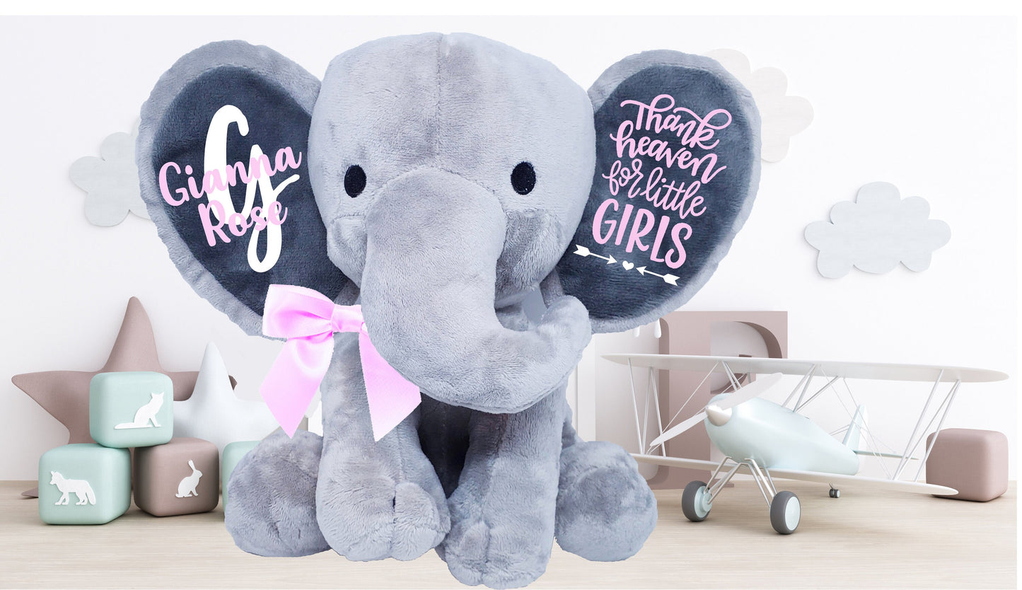 elephant stuffed animal, personalized elephant, baby shower gift, baby shower gift idea, elephant baby shower, baby shower gift girl