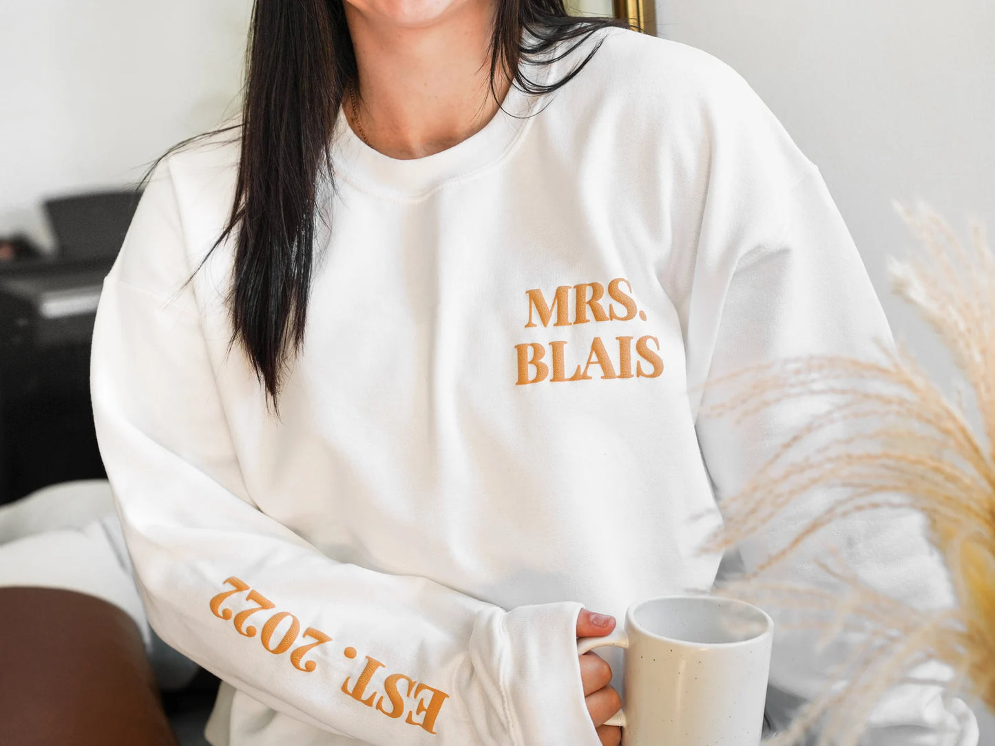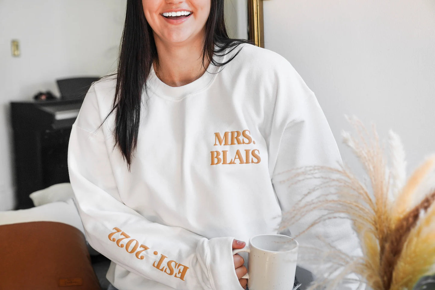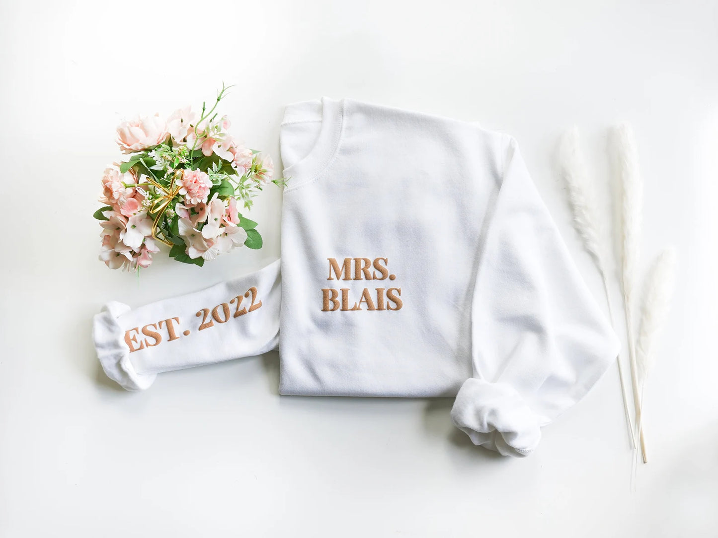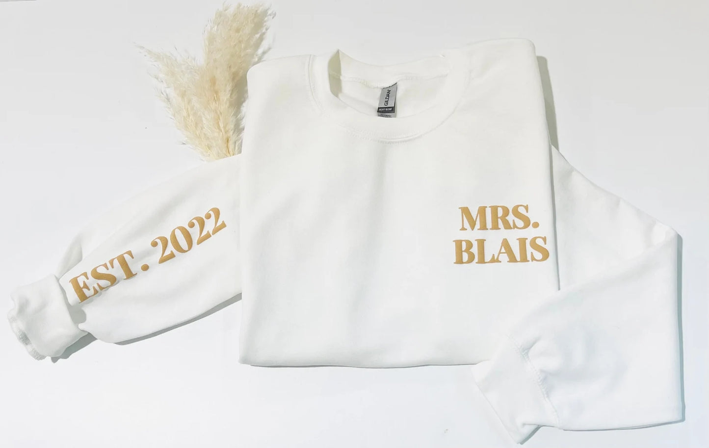 Don’t forget to explore our complete bridal gift collection for the perfect custom shirt that reflects your unique love story! And for those who love classic styles, check out our popular BRIDE or FIANCÉE crewneck sweatshirts that offer timeless elegance.