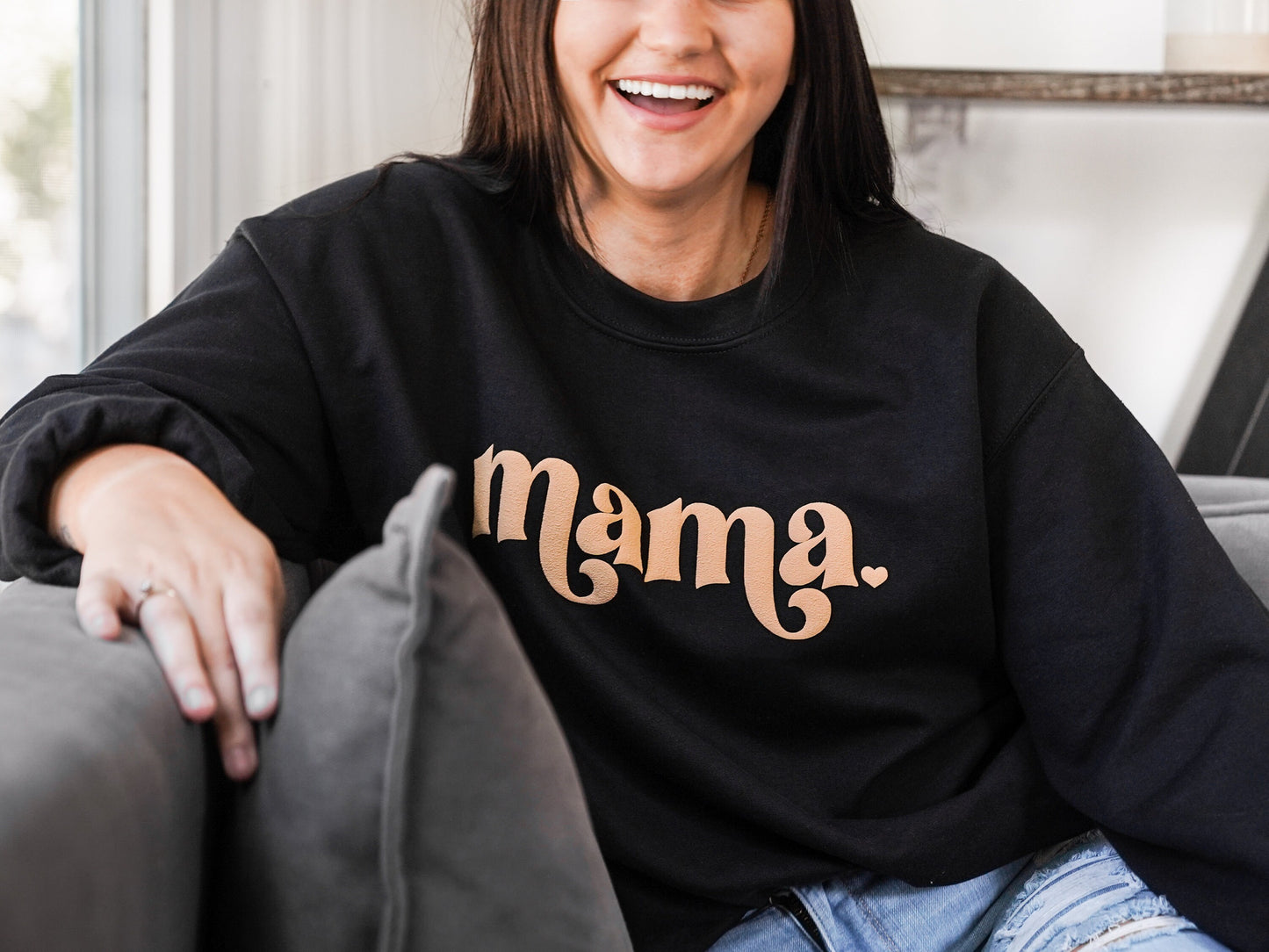 The Embossed Gold Mama Crewneck Sweatshirt is not just a piece of clothing; it's a statement. Celebrate your role as a mother with pride and enjoy the perfect combination of fashion and functionality. The eye-catching gold embossing adds a touch of sophistication, making it a standout piece in your wardrobe. Experience the comfort and style that will make you feel fabulous every time you slip it on.
