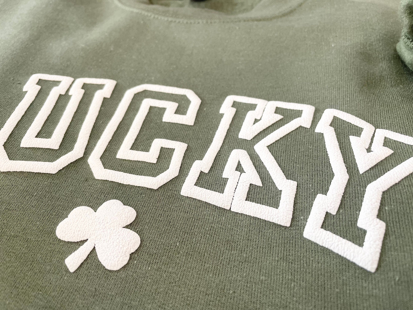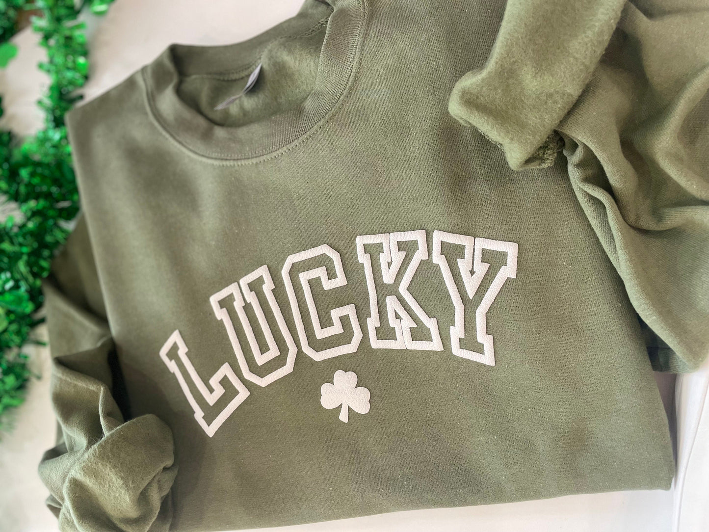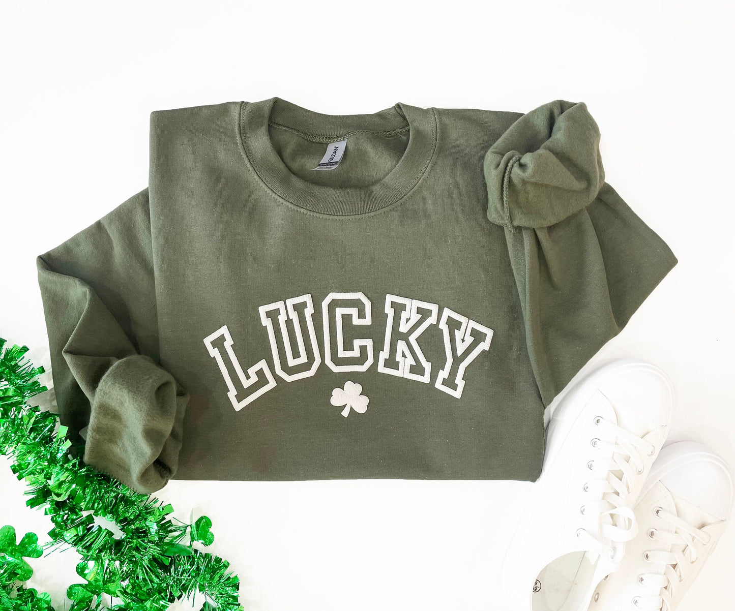 Embossed LUCKY Varsity St. Paddys Sweatshirt
