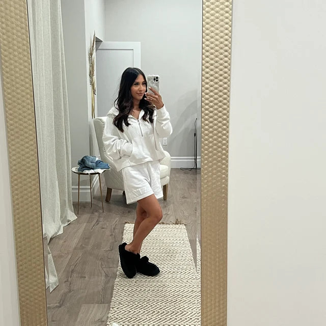 - Versatile Style: While this sweatsuit is available in pure white, you can also explore additional colors like black, pink, and nude to suit your personal style.