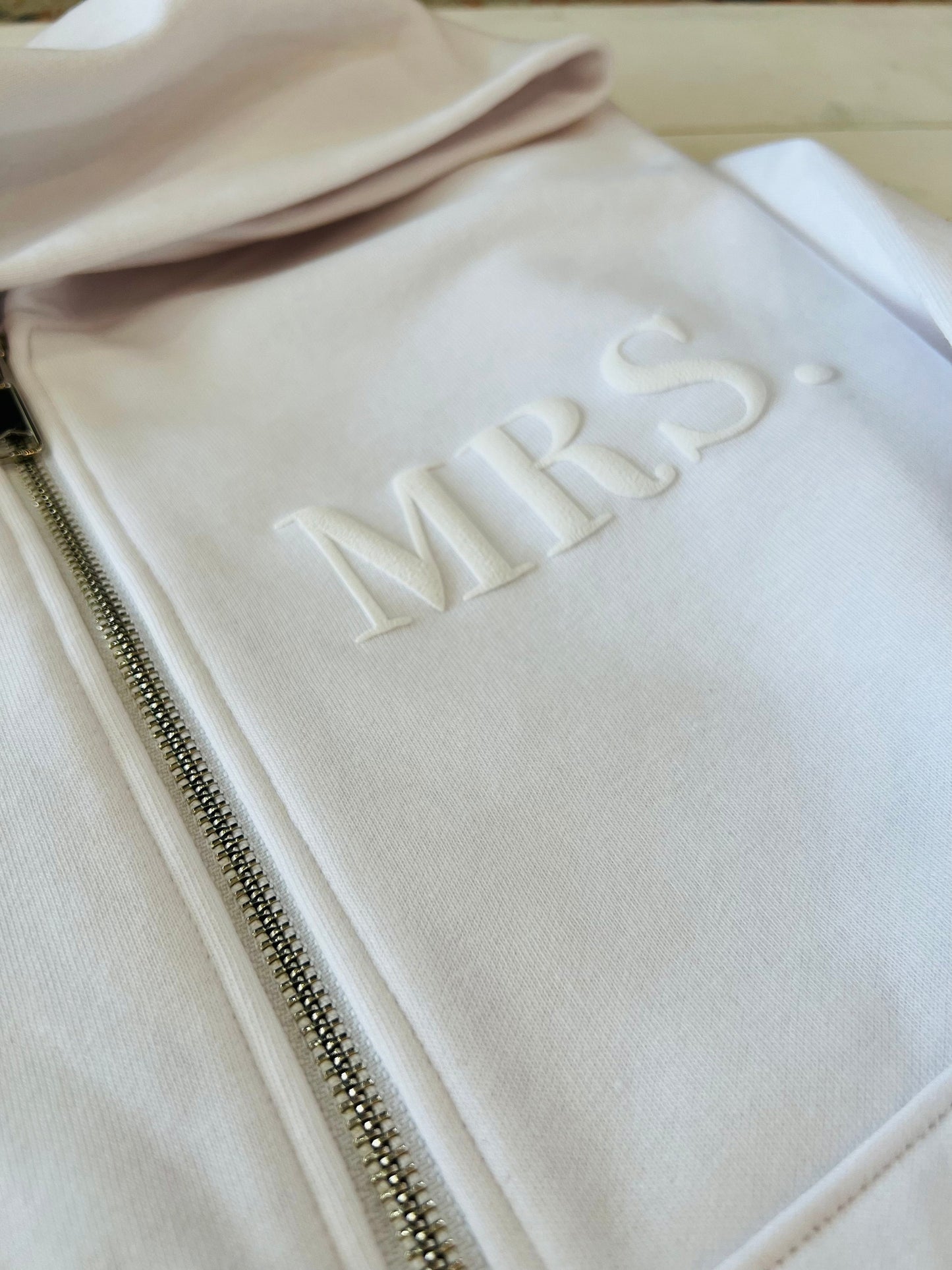 Elevate Your Bridal Experience with Our Embossed Pure White Bride Sweatsuit