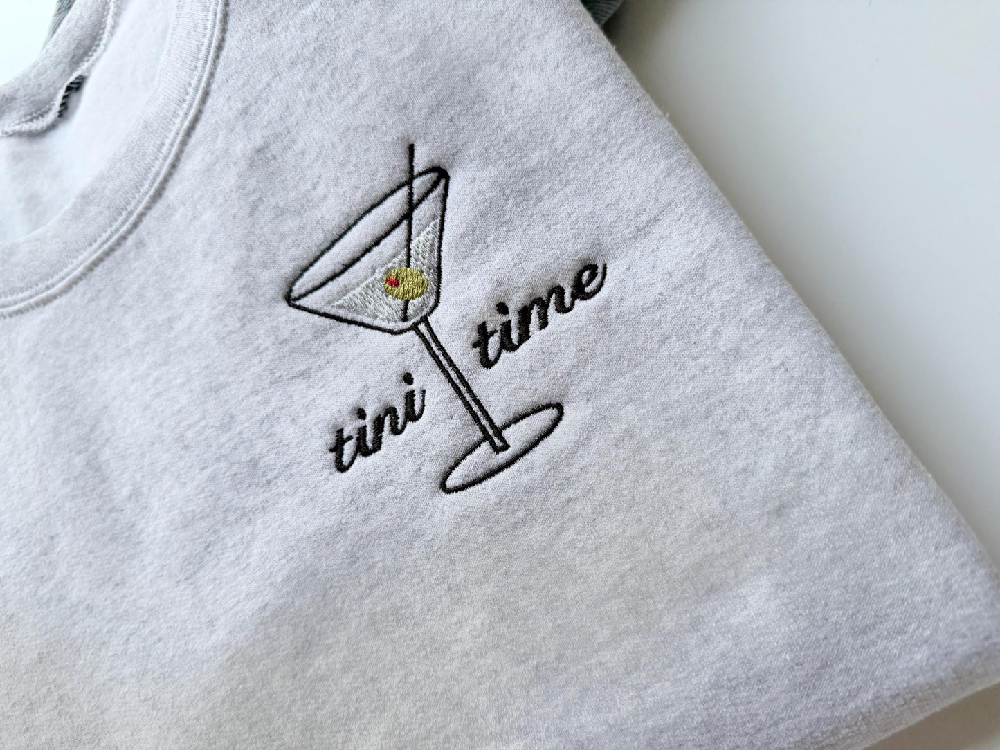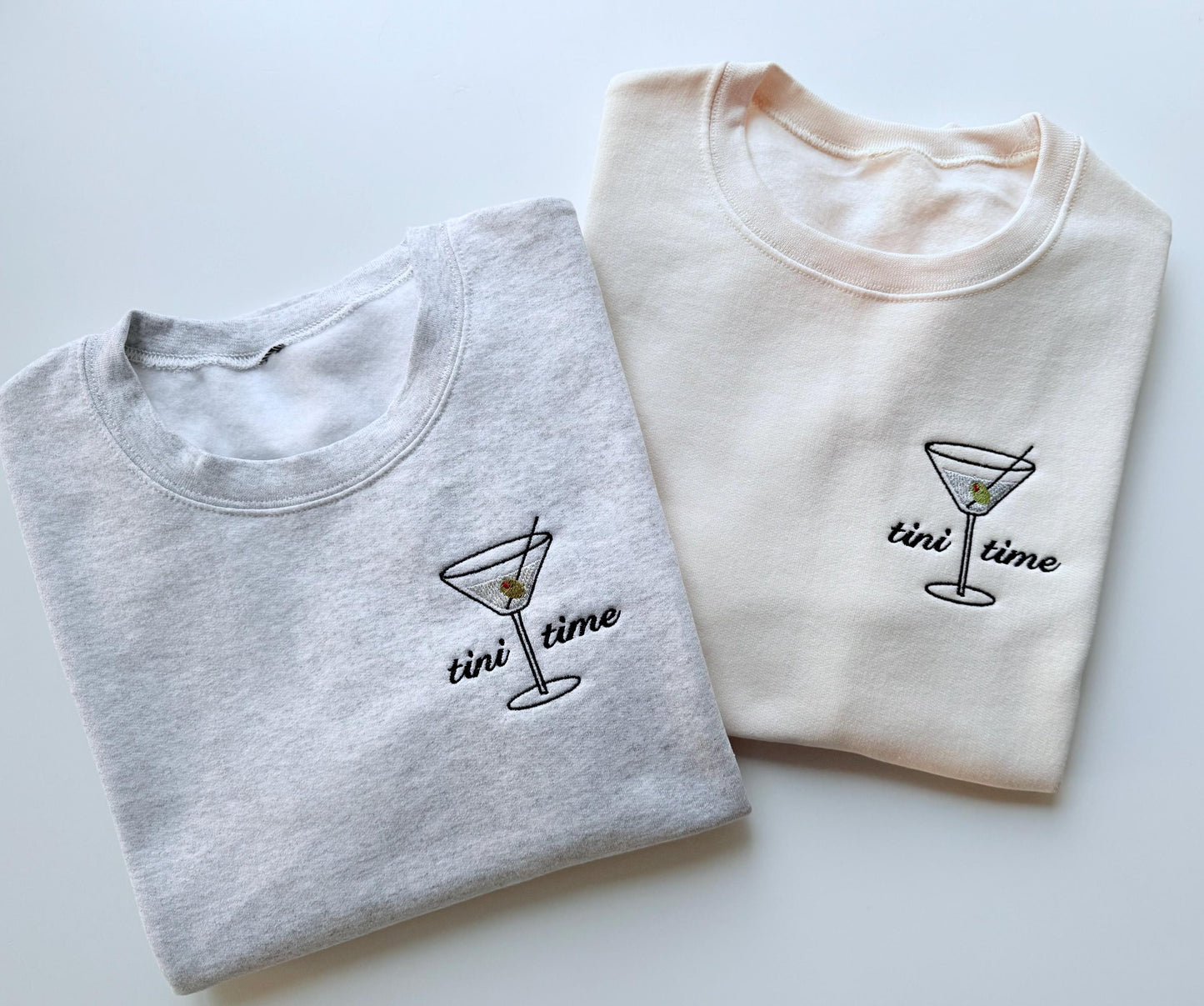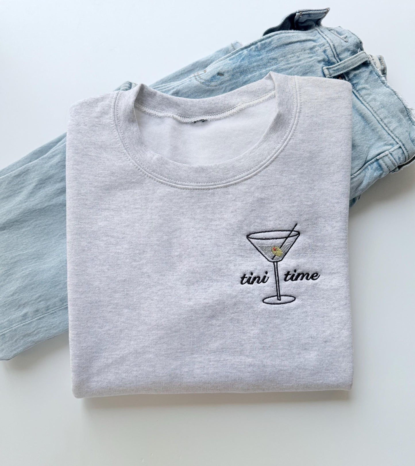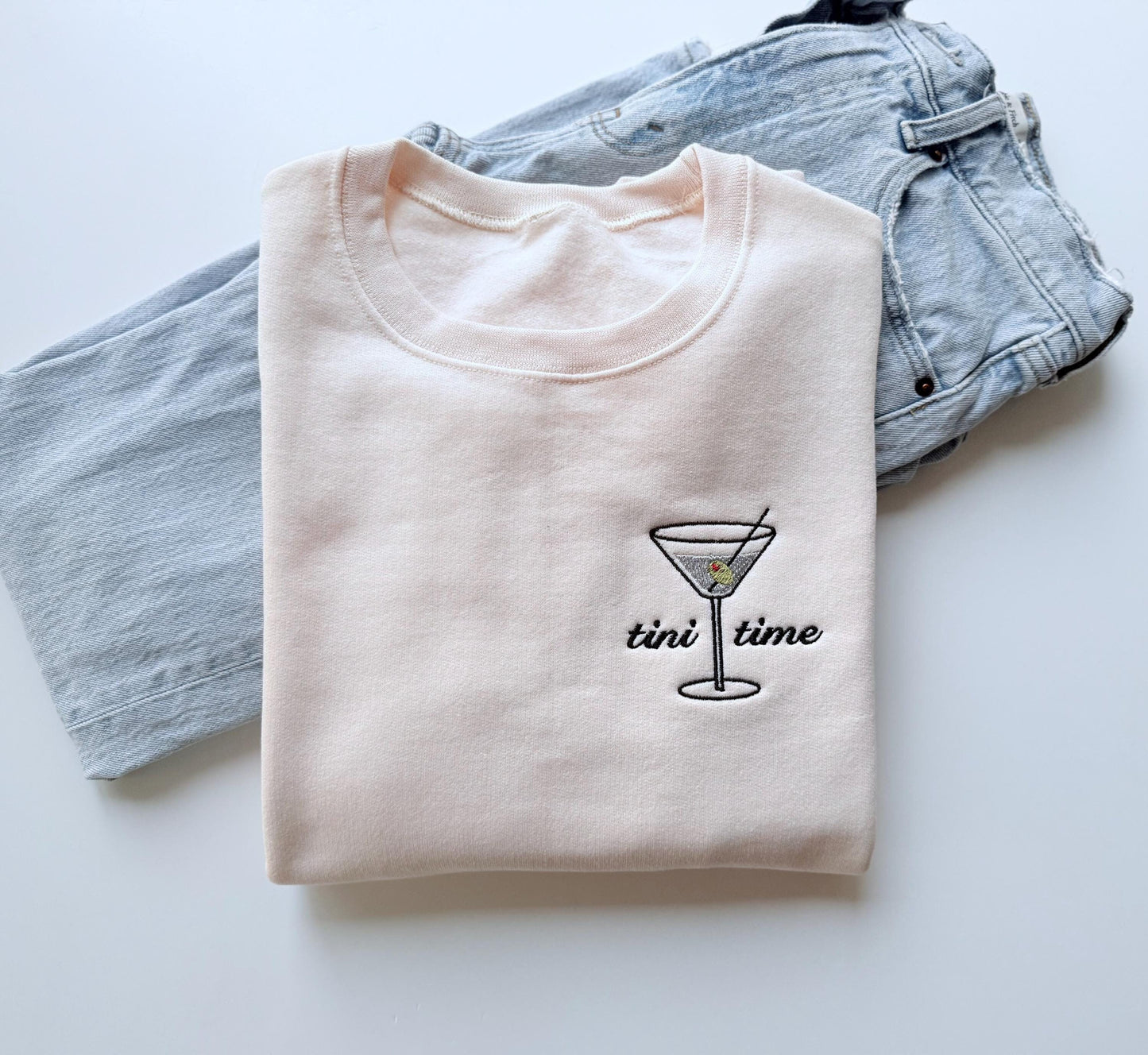 Express your love for dirty martinis with this chic Embroidered Dirty Martini Sweatshirt! Designed for cocktail enthusiasts, this cozy crewneck showcases a beautifully detailed embroidered design of a classic dirty martini, bringing a playful yet sophisticated vibe to your everyday wardrobe.