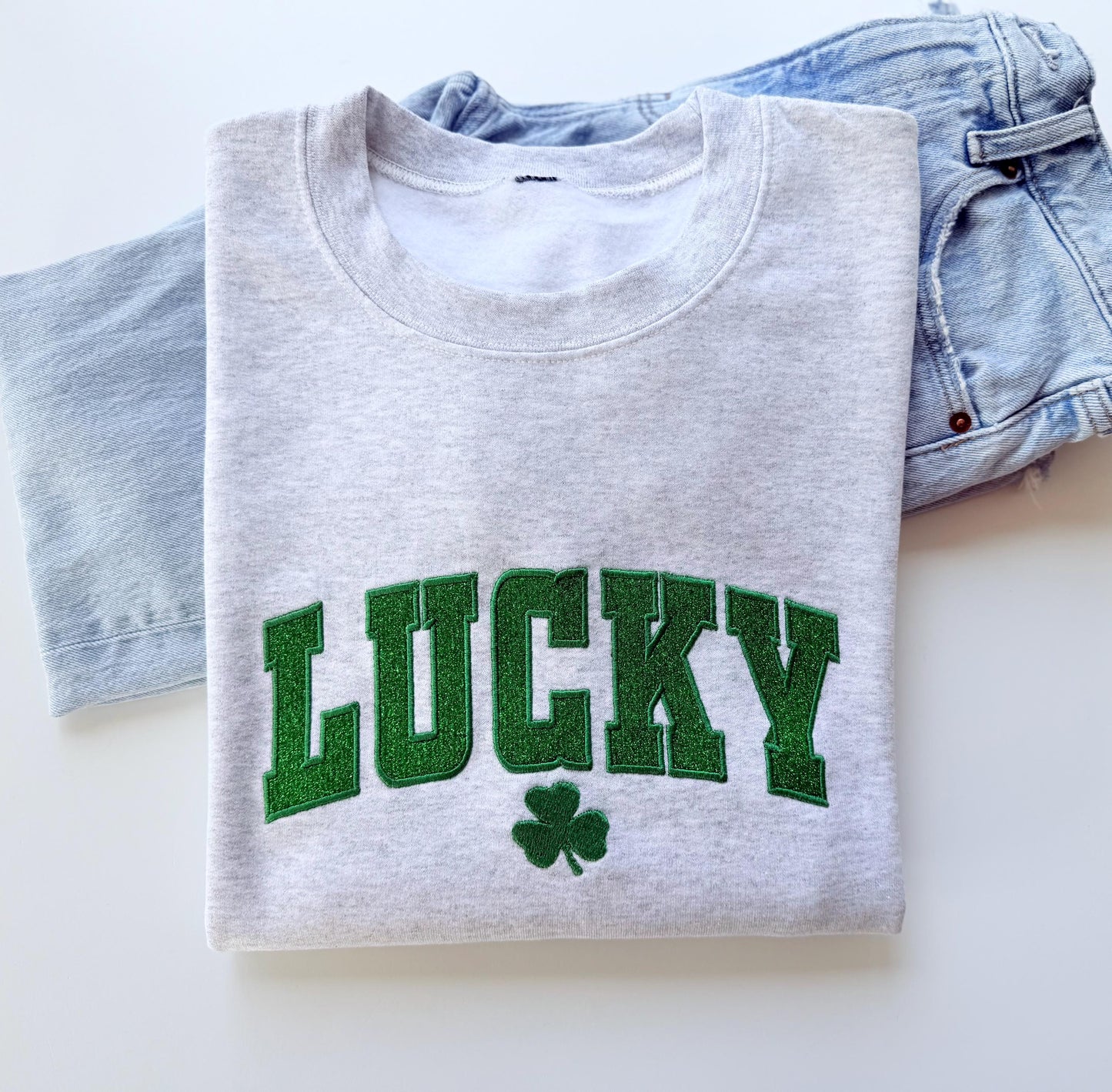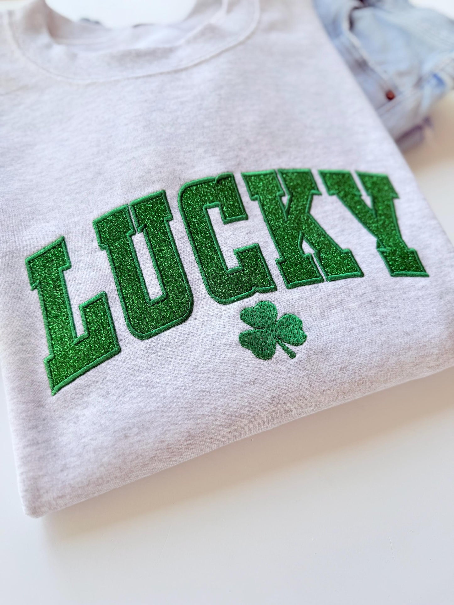 Embroidered Glitter Lucky St. Patrick's Day Sweatshirt