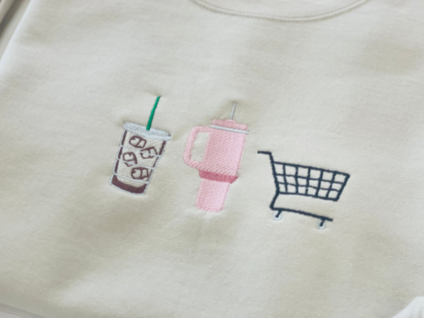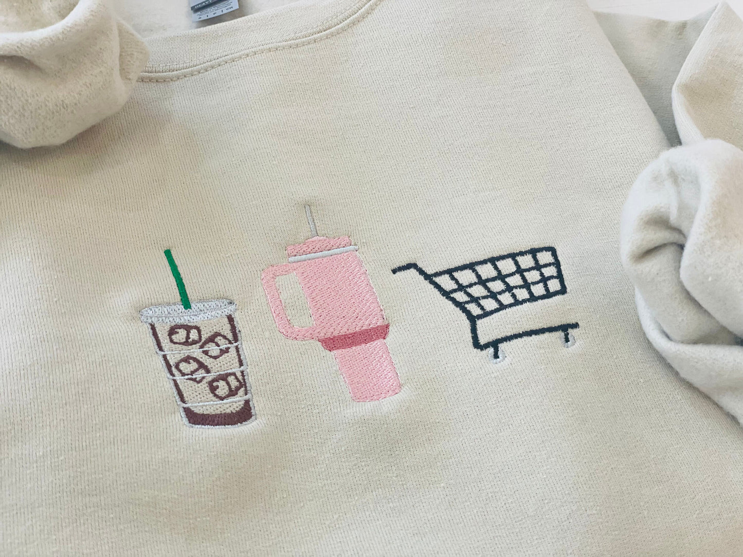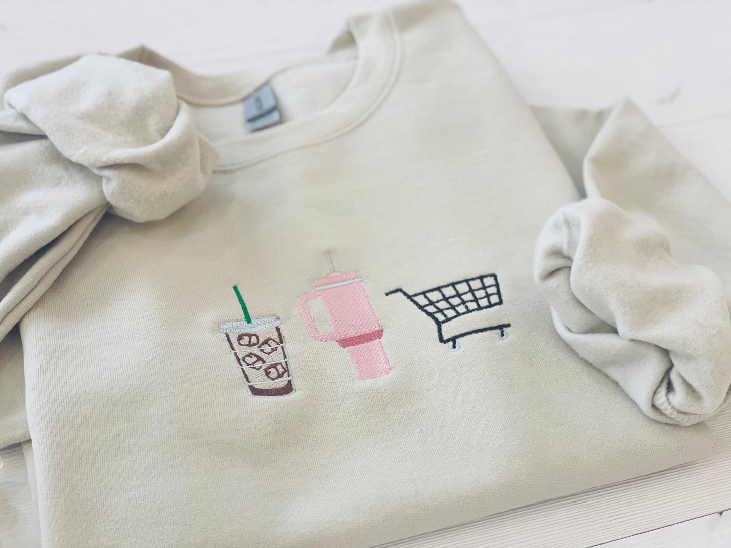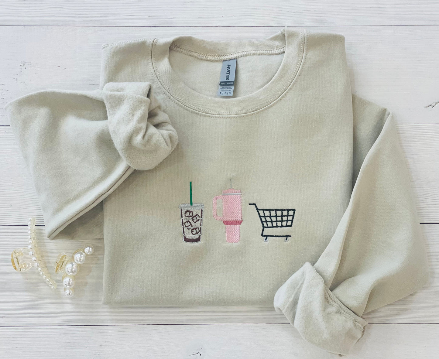 Embroidered Stanley Coffee Cup Shopping Cart Sweatshirt