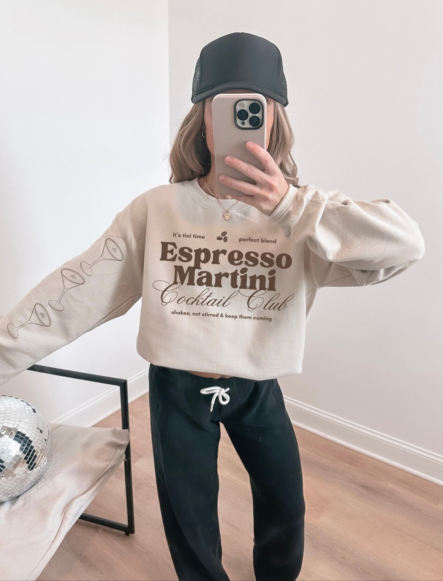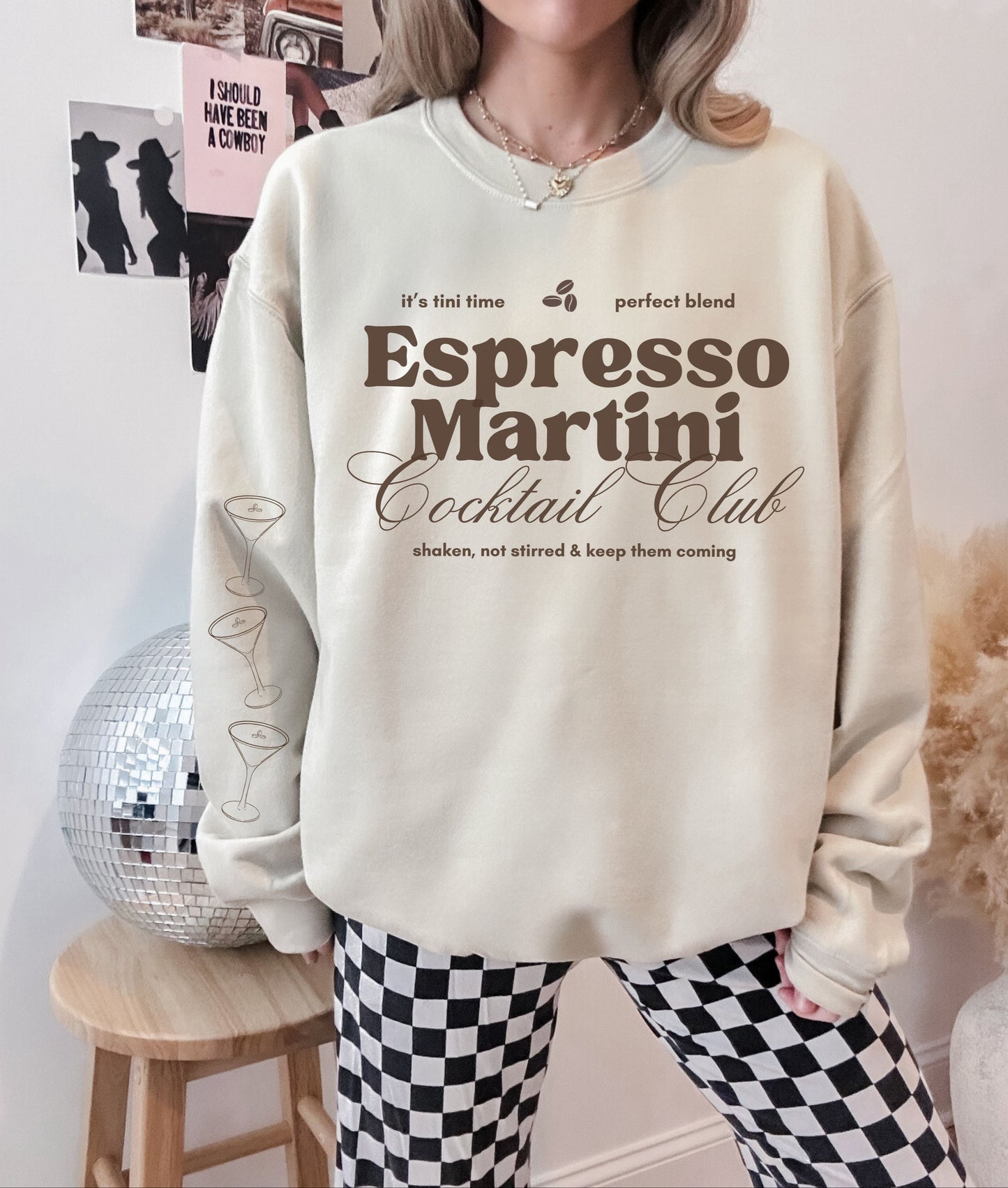 Shake up your cocktail hour with the Espresso Martini Cocktail Club Sweatshirt. Designed for those who appreciate style as much as a perfectly balanced martini, this sleeve features an elegant trio of martinis cascading down the side, bringing a touch of sophistication to your look.