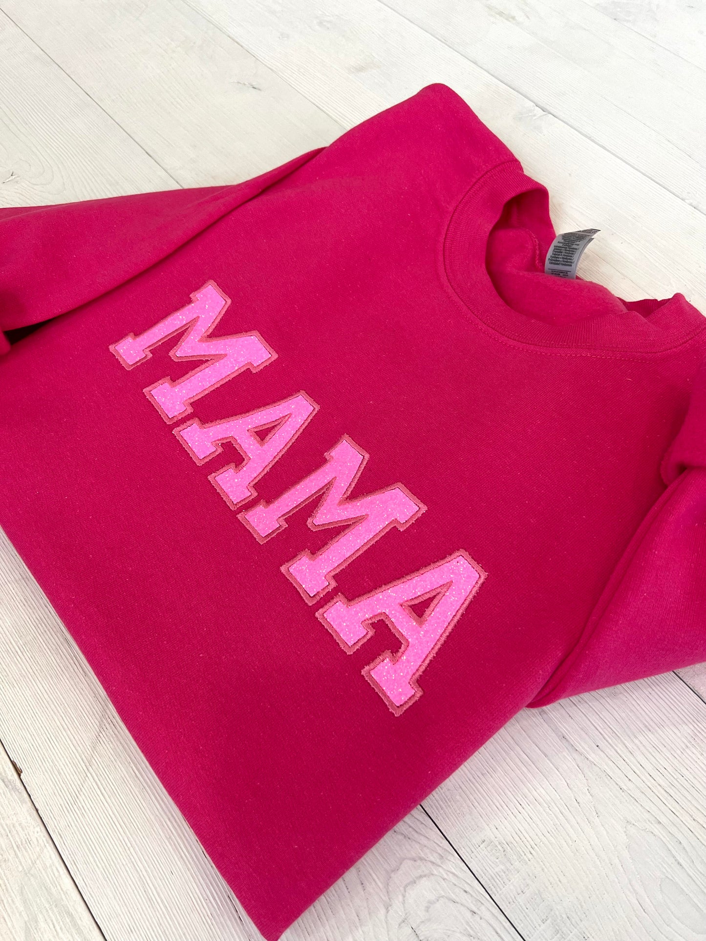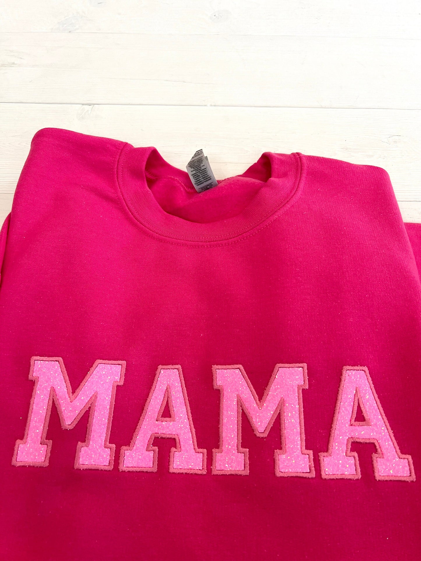 Glitter Applique Embroidered Hot Pink Mama Sweatshirt