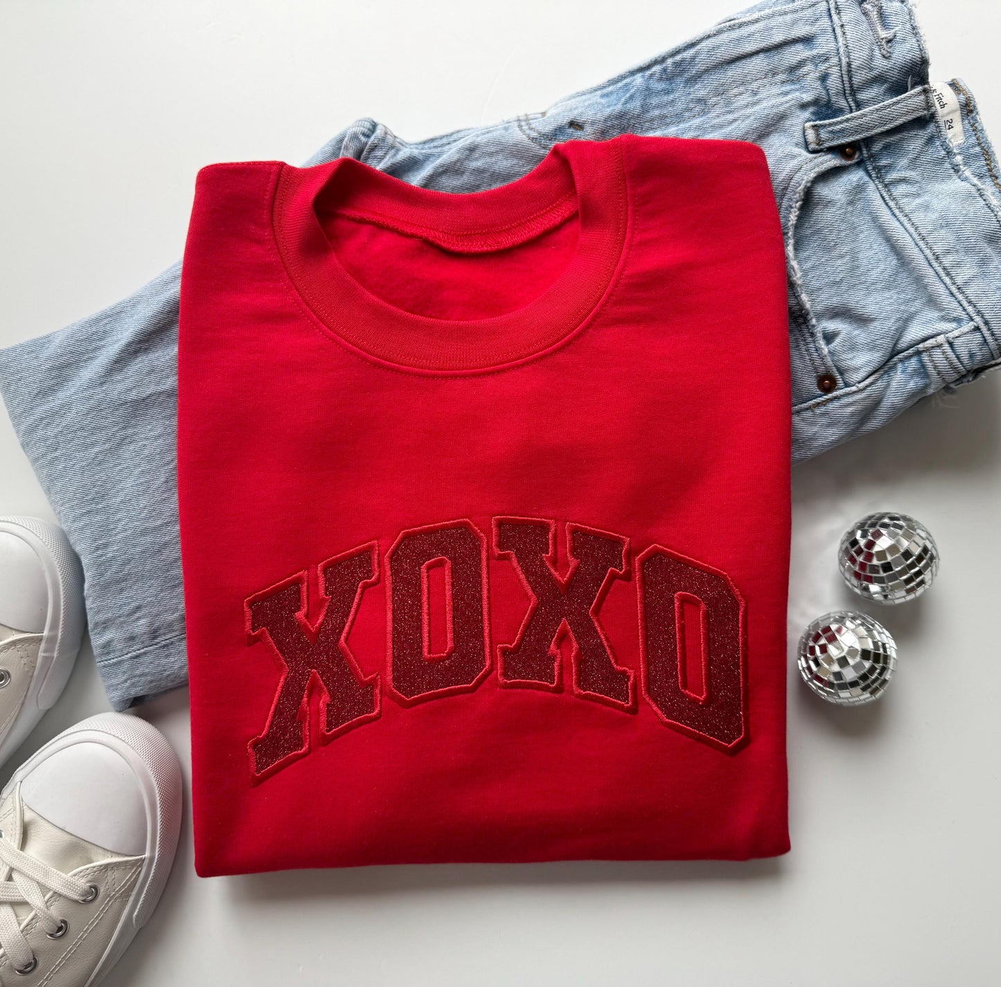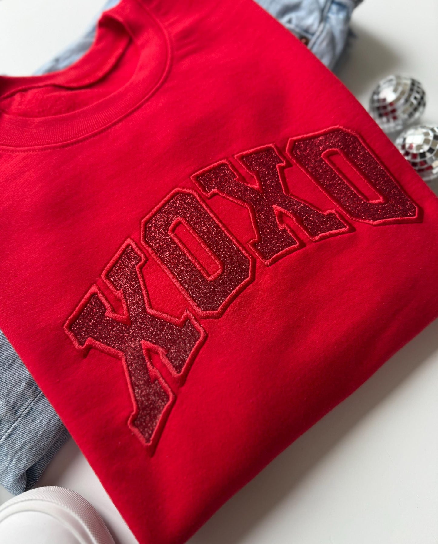 Glitter Red XOXO Embroidered Valentine Sweatshirt
