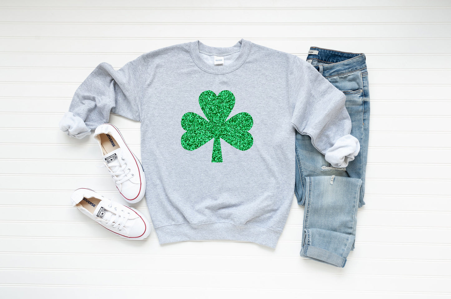 Add some sparkle to your wardrobe with our Glitter Three Leaf Clover T-Shirt! This festive tee features a dazzling glitter clover design, perfect for celebrating St. Patrick’s Day in style.