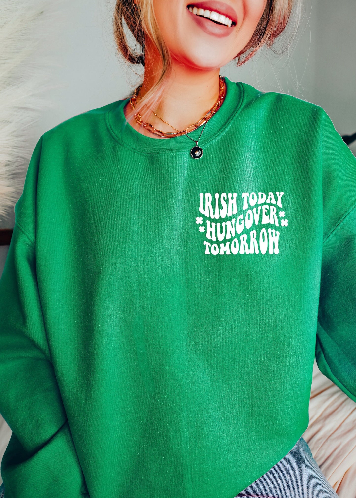 Irish Today Hungover Tomorrow, Women's St Pattys Day Sweatshirt, St Paddys Day Outfit, Womens Lucky Sweatshirt, St Patricks Day Sweatshirt