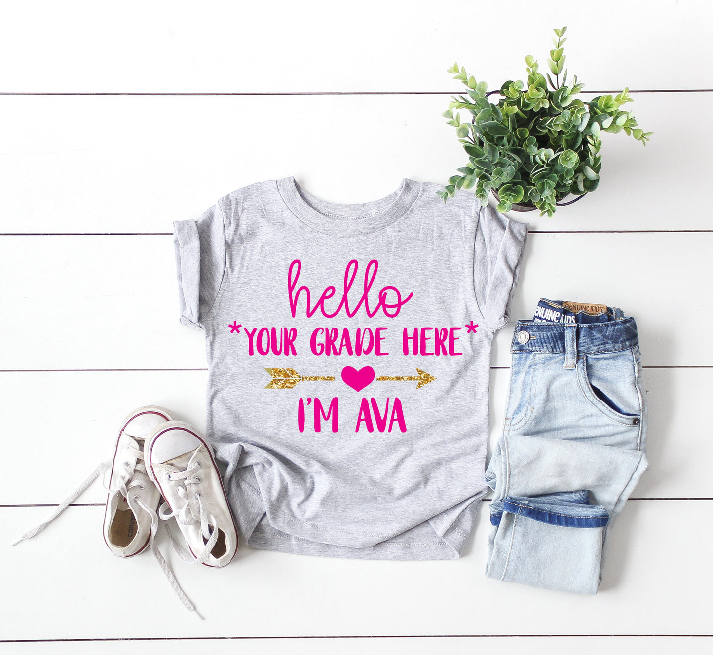 kindergarten shirt, hello first grade, hello second grade, first day of school shirt, 3rd grade tee, announcement tee, 4th grade tee, custom