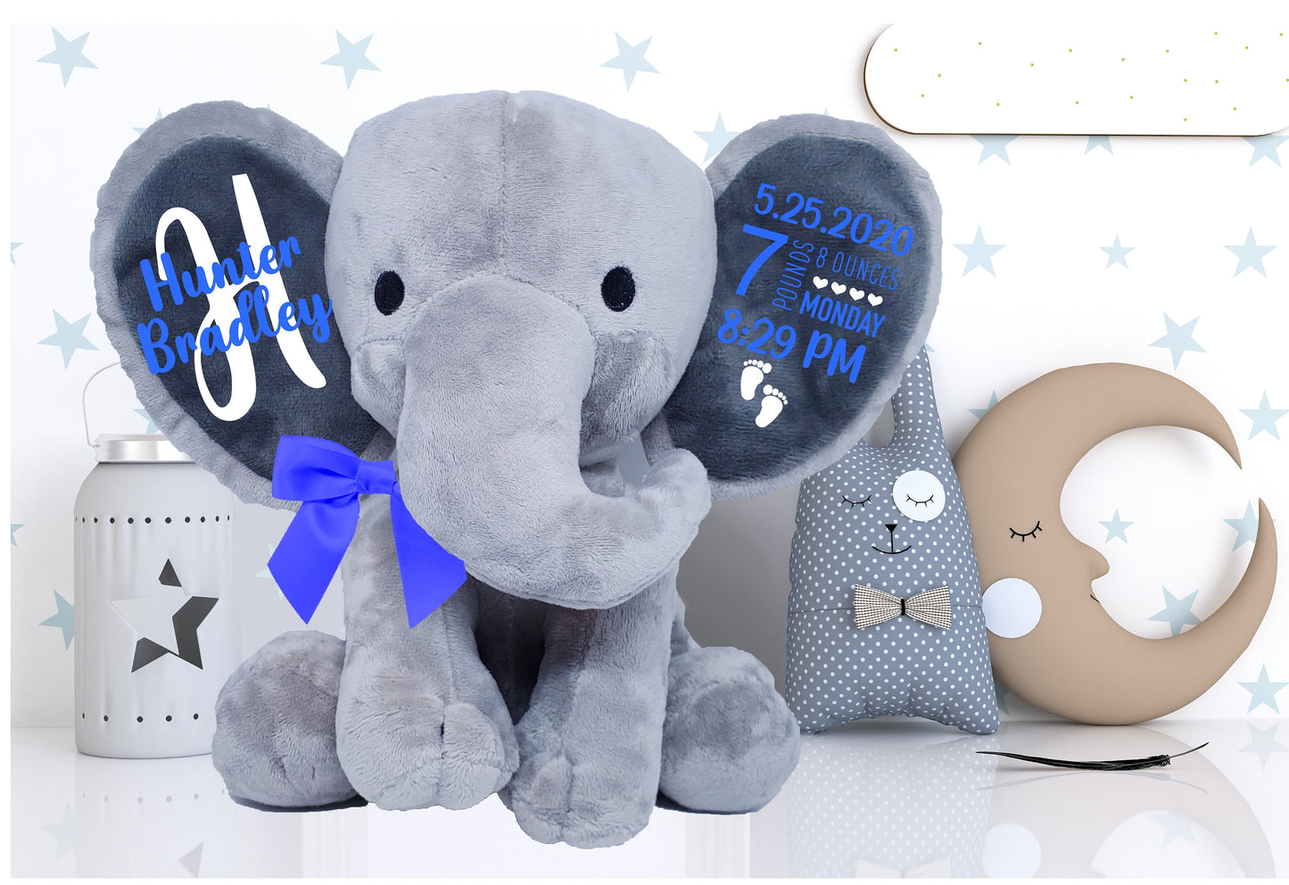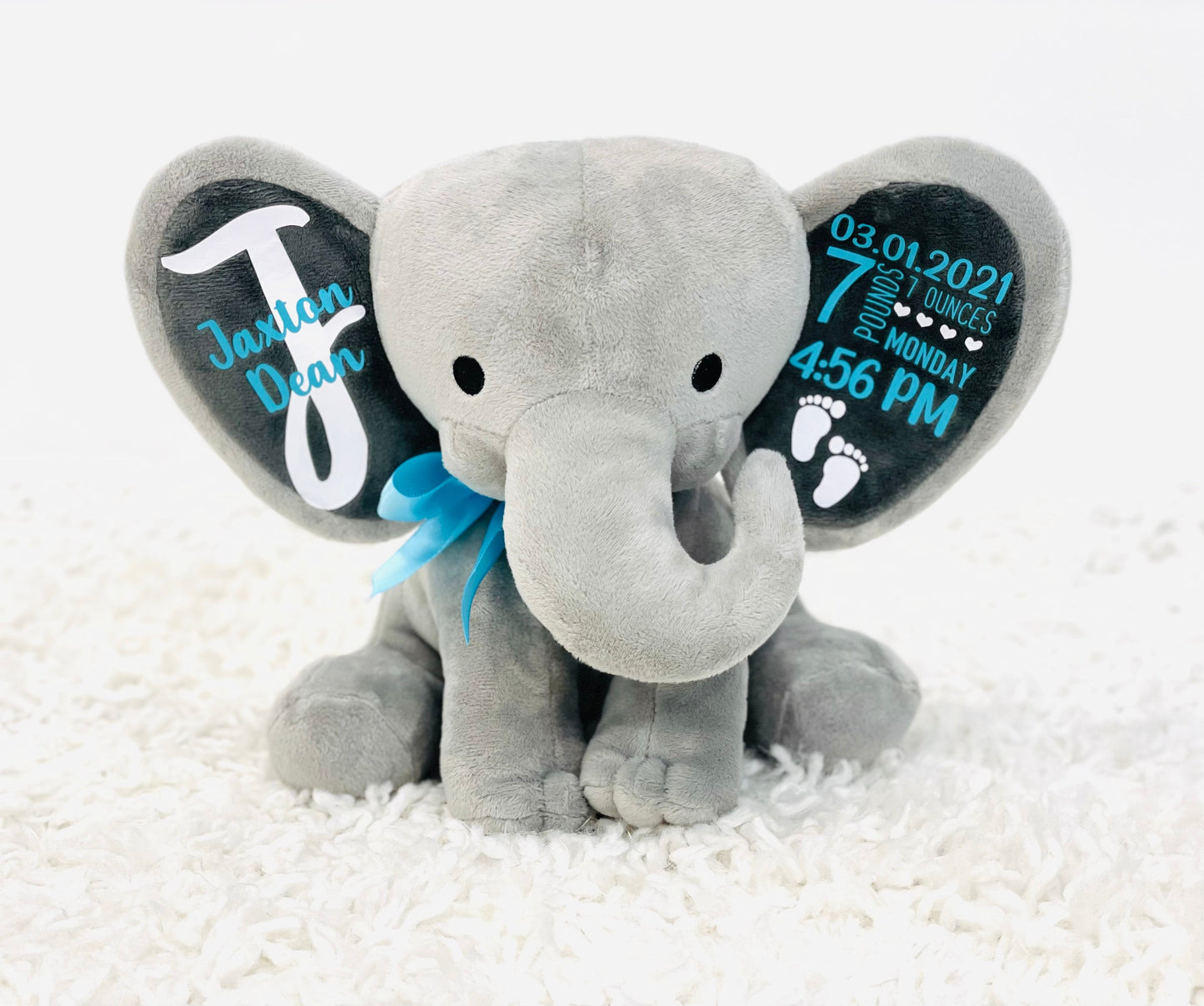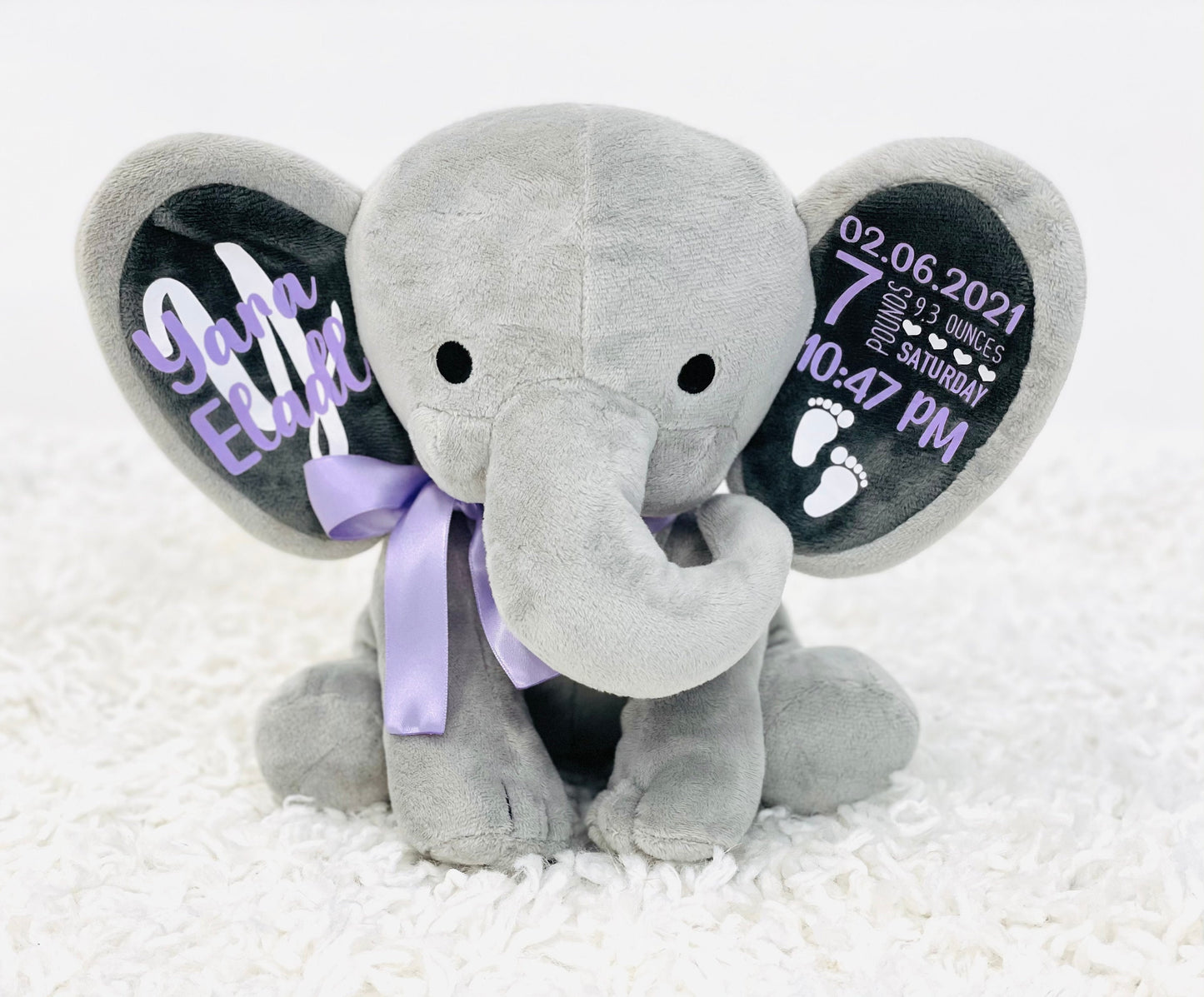 personalized elephant, stuffed animal gift, baby shower gift, newborn gift, new baby gift, birth announcement, baby gift, welcome home baby