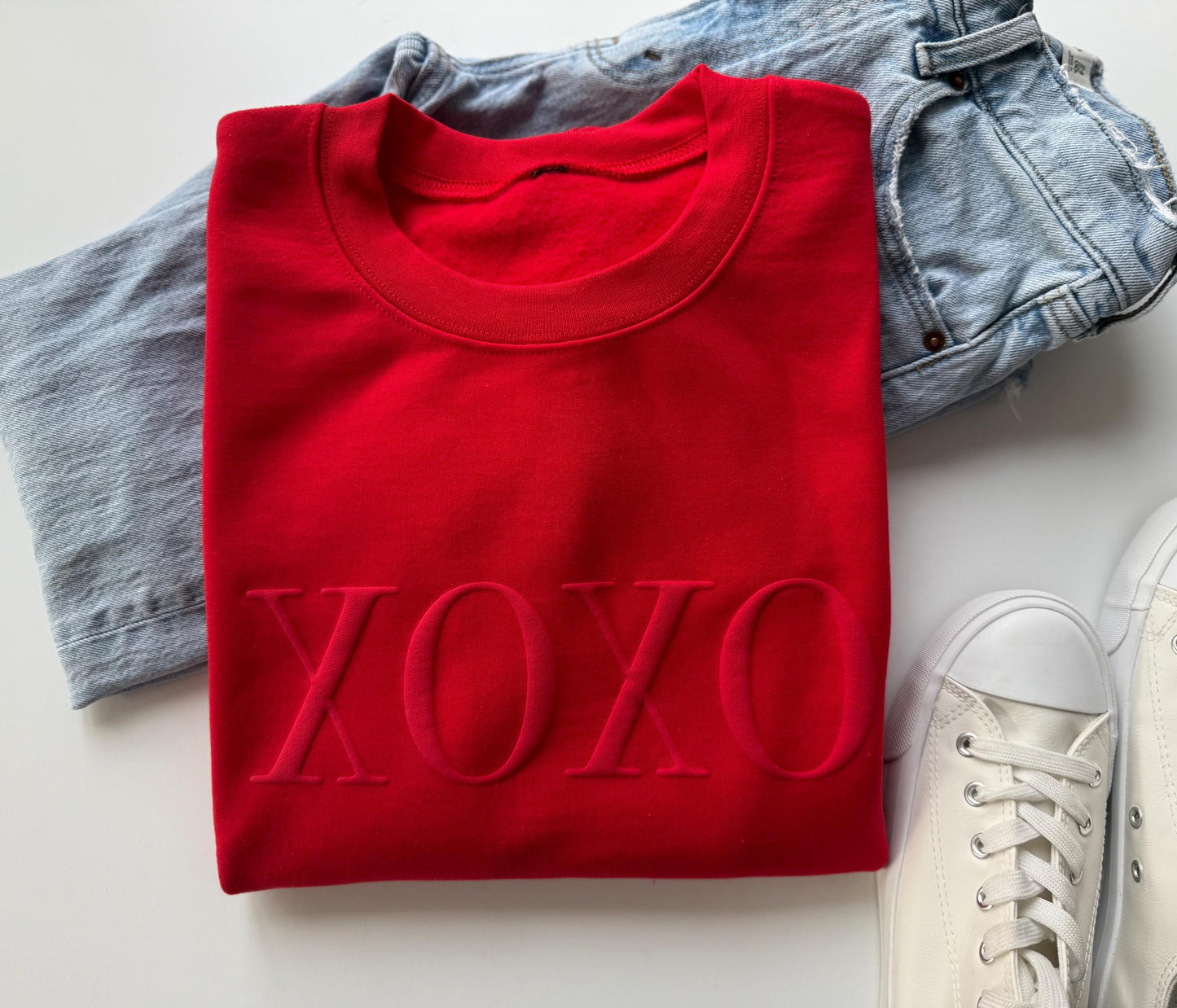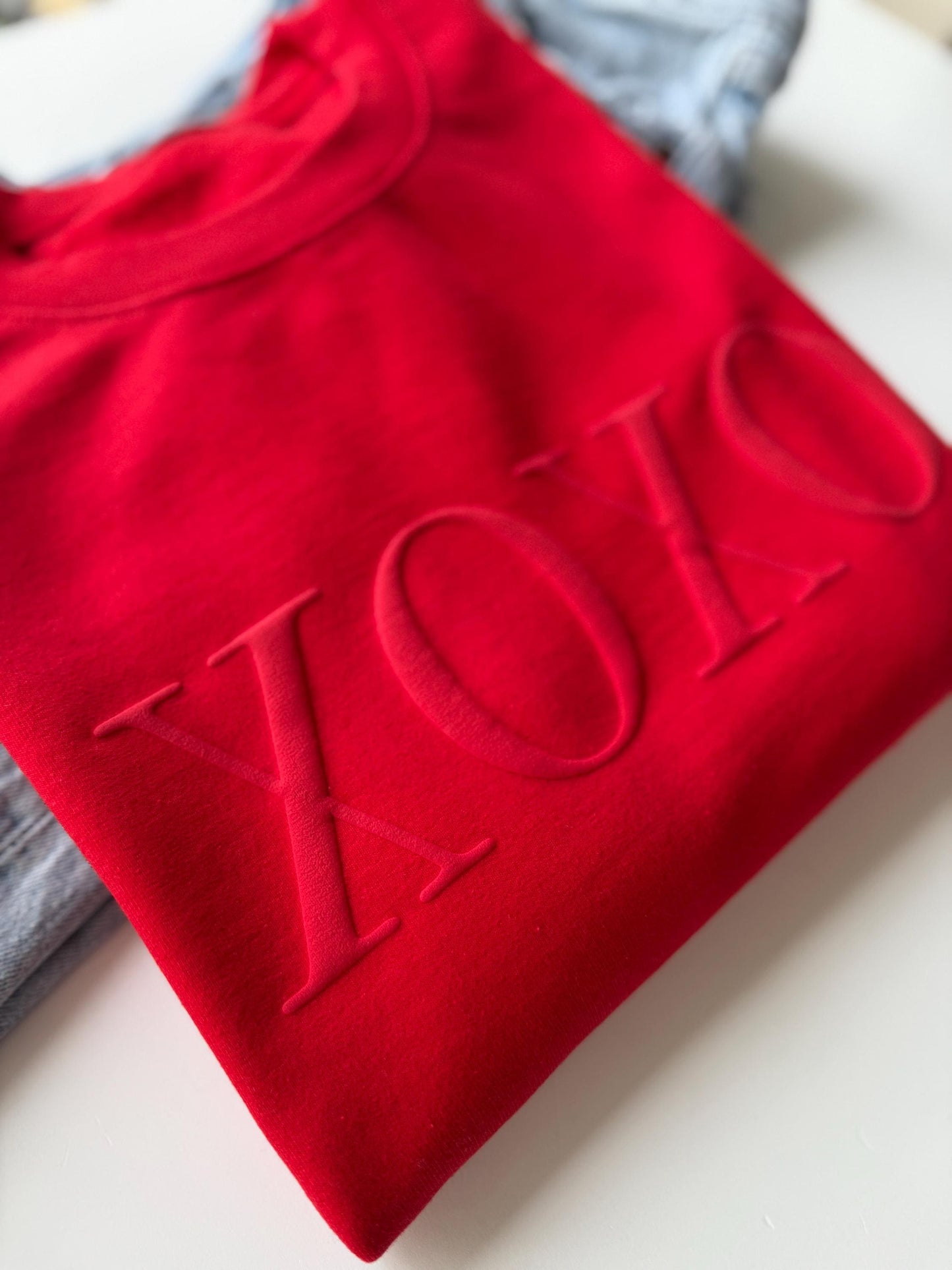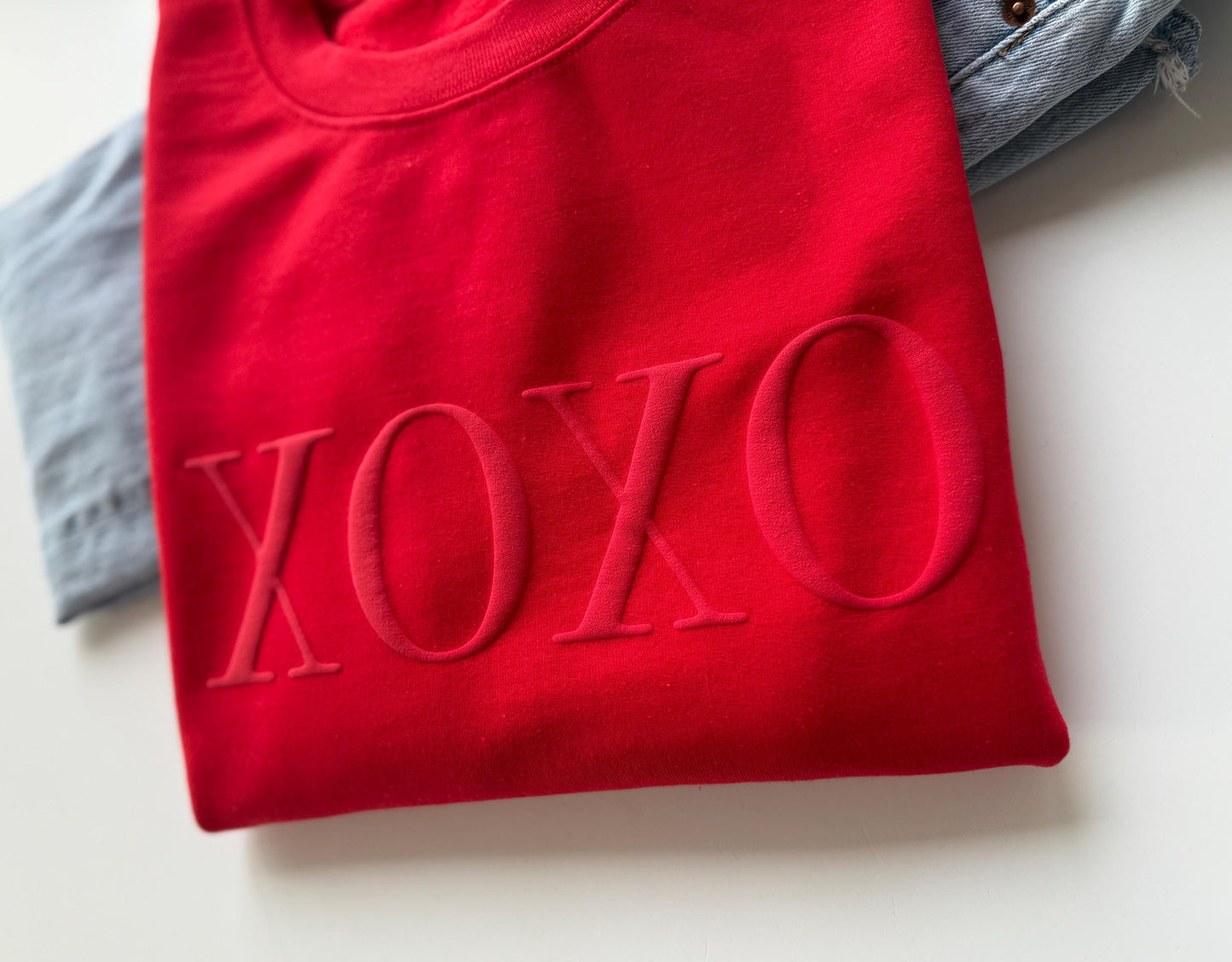 Red XOXO Puff Embossed Valentines Sweatshirt