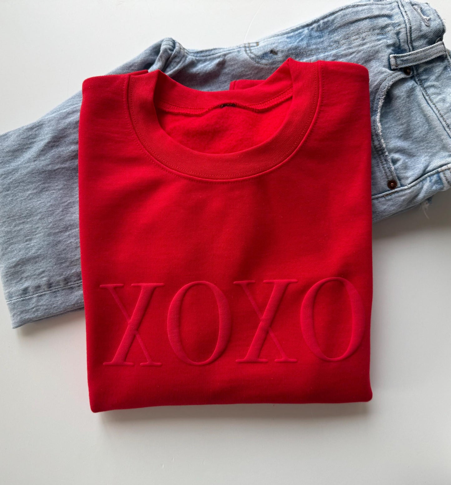 Stay cozy and stylish this Valentine’s Day with our Red XOXO Puff Embossed Sweatshirt. Featuring a bold, textured "XOXO" design, this soft and vibrant sweatshirt is perfect for spreading love and making a statement 🫶