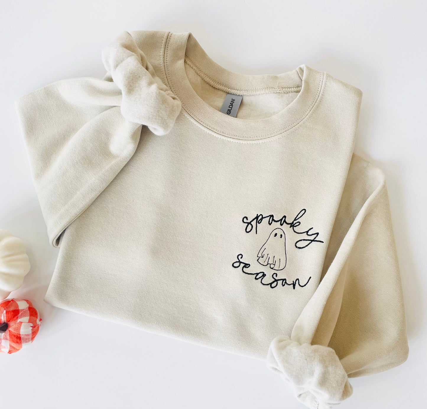 Don’t miss out on adding this delightful piece to your fall collection. Grab your Spooky Ghost Halloween Embroidered Sweatshirt now and prepare for a hauntingly good time!
