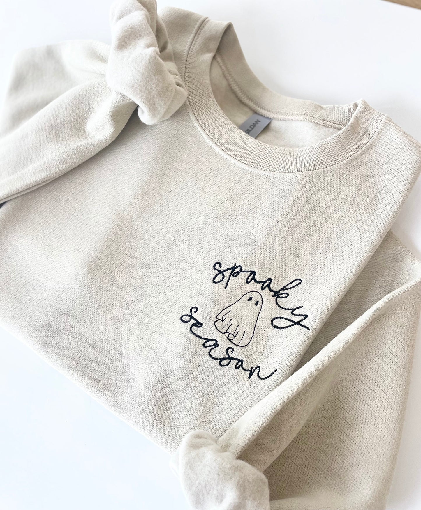Spooky Ghost Halloween Embroidered Sweatshirt
