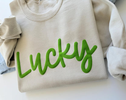 Get parade-ready with our St. Patty's Day Parade Lucky Sweatshirt. This festive sweatshirt features the word 'Lucky' in lively, eye-catching lettering, set against a backdrop of classic Irish green.