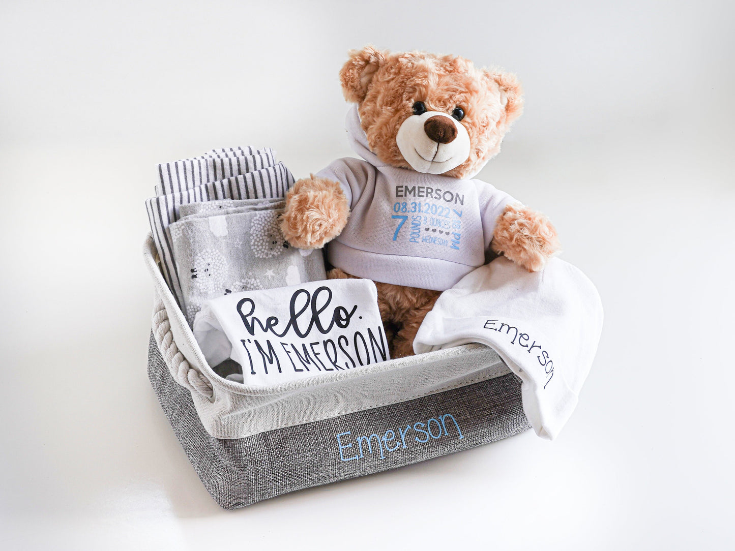 Teddy Bear Newborn Baby Welcome Home Gift Basket