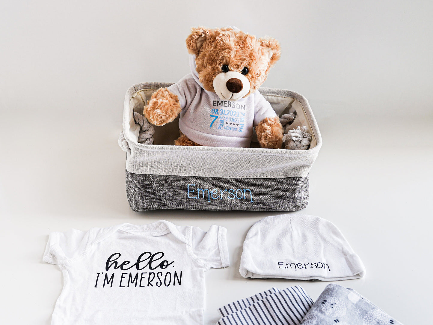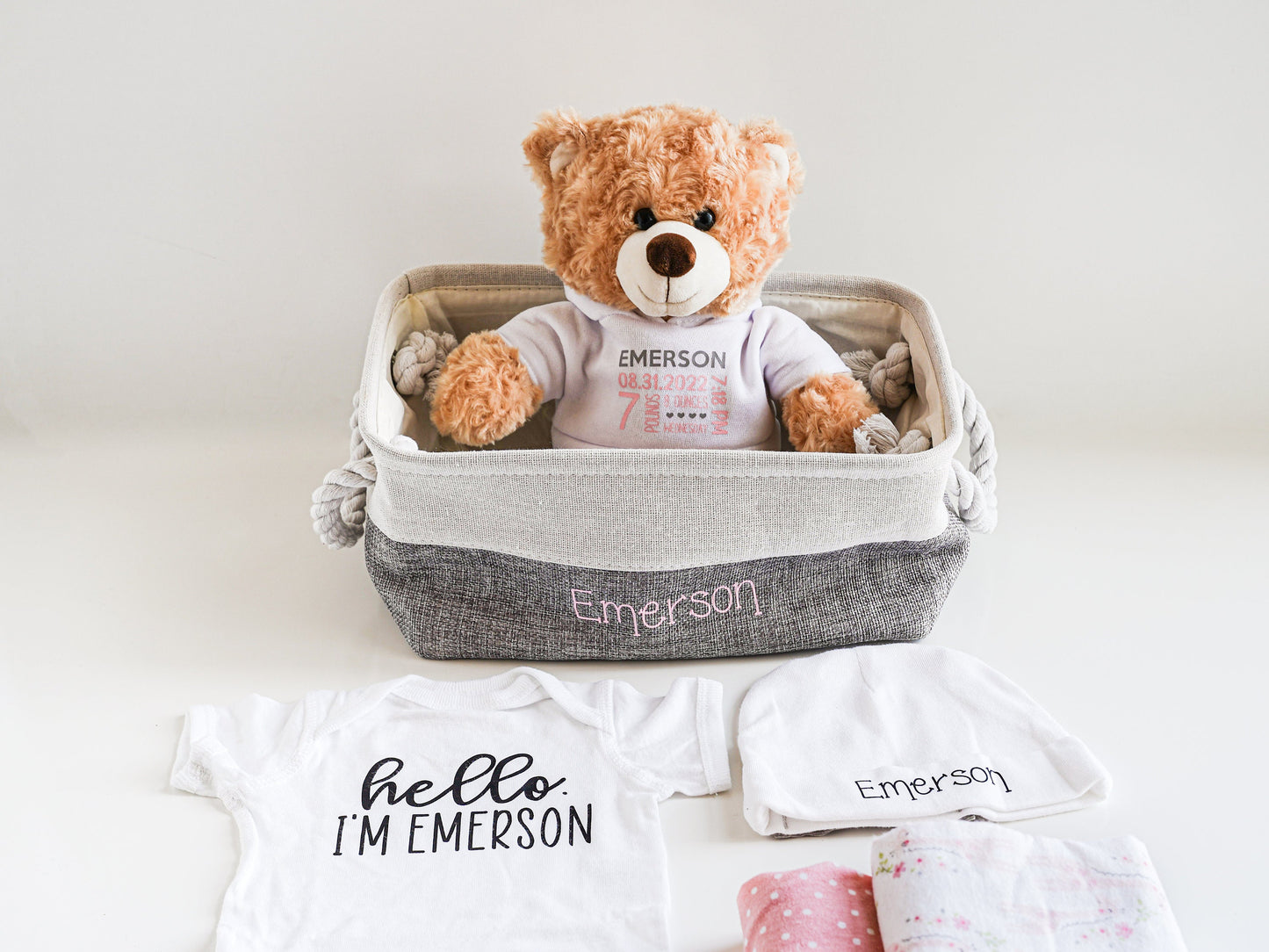 - A personalized teddy bear keepsake to honor the baby’s arrival.
