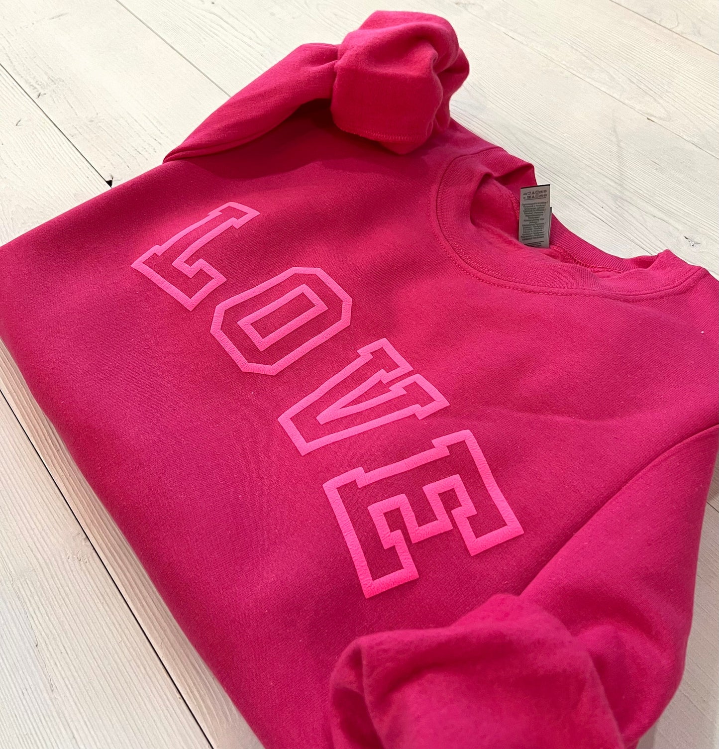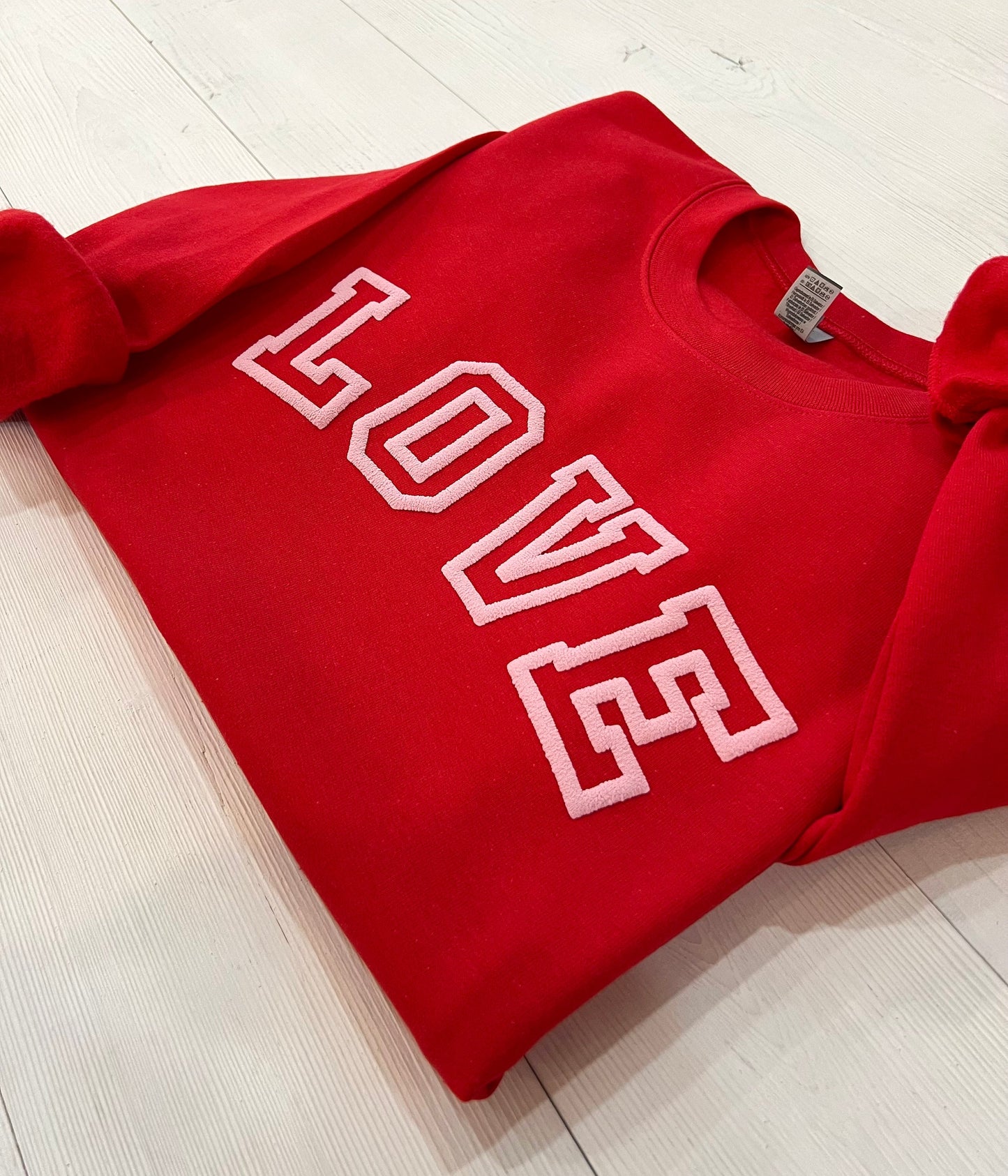 Valentines Day LOVE Varsity Embossed Sweatshirt