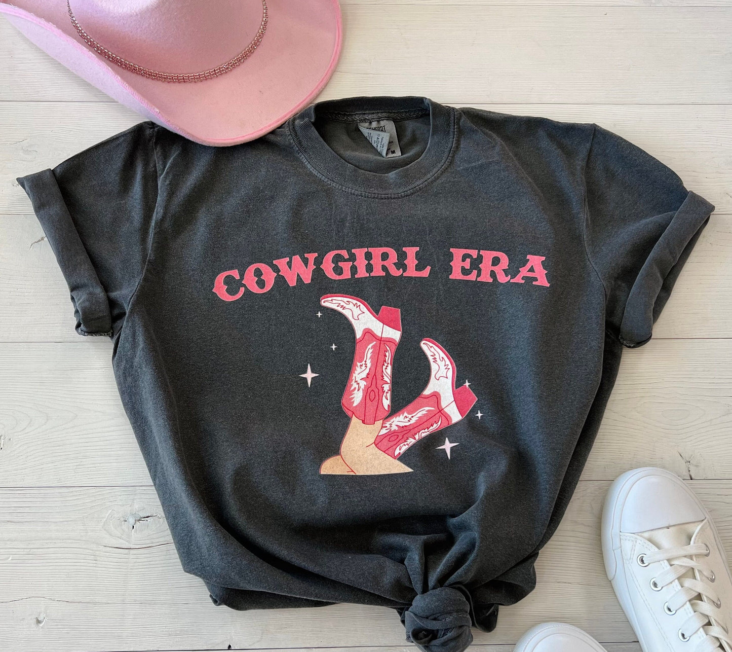 Embrace your inner cowgirl and make a statement with the Women's Western Retro Cowgirl Era Pink Boots T-Shirt. Order yours today and step out in style!